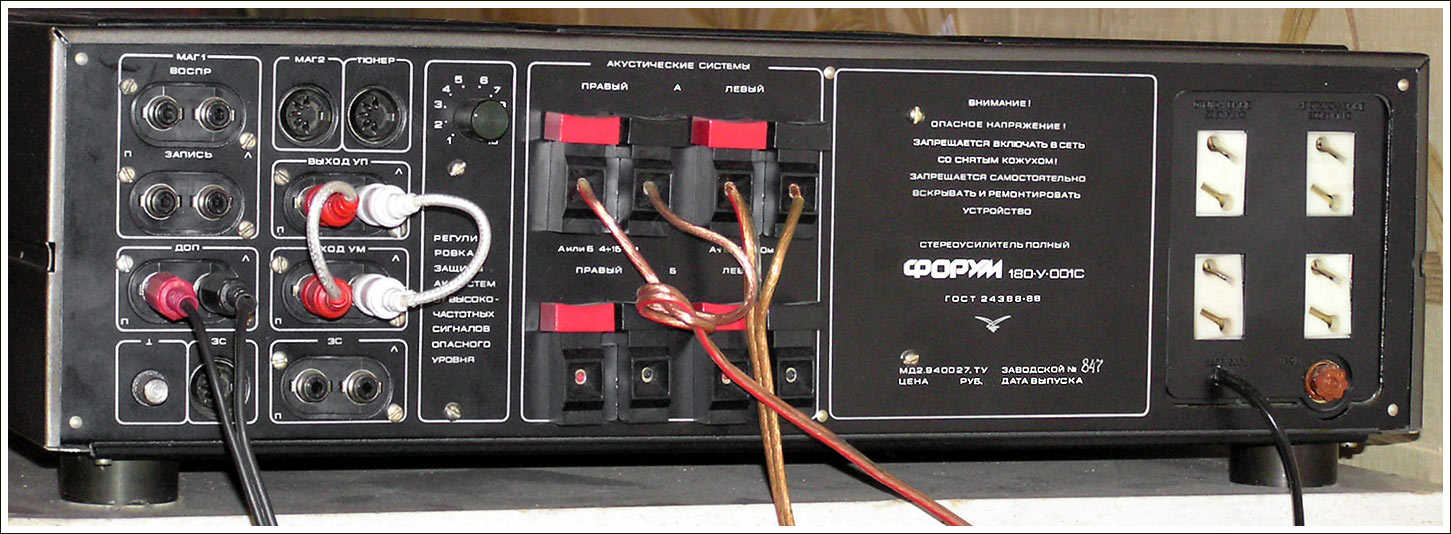 Усилитель полный *Форум 180У-001-стерео* выпускал с I-кв 1988 года Ленинградский завод им. Калинина. Усилитель представляет собой модернизацию усилителя *Форум У-001-стерео*. *Форум 180У-001С** это полный усилитель ЗЧ предназначенный для высококачественного усиления сигналов с различных источников до мощности 180 Вт. Диапазон частот 20...20000 Гц. Коэффициент нелинейных искажений на частотах от 250 Гц до 8 кГц не превышает 0,01%. Усилитель имеет регуляторы тембров и переключатель источников сигнала. Потребляемая мощность 330 Вт. Габариты усилителя 440х145х420 мм. Масса 17 кг.