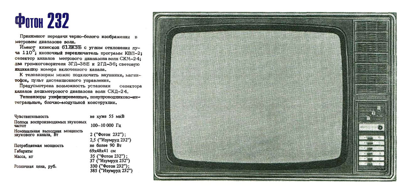 Телевизионный приёмник ч/б изображения *Фотон-232* с 1985 года опытной серией выпускал Симферопольский завод телевизоров имени 50-летия СССР.