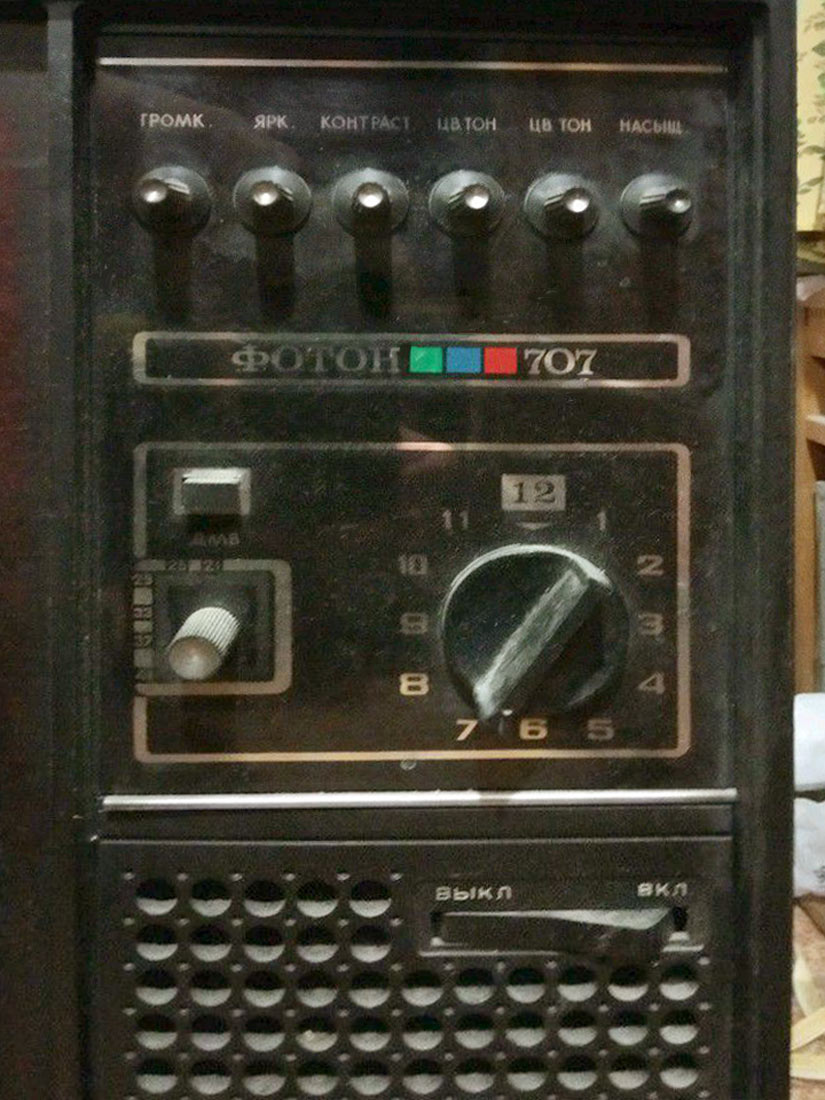 Телевизионный приёмник цветного изображения *Фотон-707/Д* с 1974 года выпускал Симферопольский завод телевизоров имени 50-летия СССР. *Фотон-707/Д* (УЛПЦТ-59-II-2) - это унифицированный цветной лампово-полупроводниковый телевизор второго класса, рассчитанный на приём цветных и чёрно-белых передач в МВ и ДМВ диапазонах (индекс Д). Чувствительность в МВ диапазоне - 50 мкВ, в ДМВ диапазоне - 110 мкВ. Чёткость по горизонтали 450 линий. Номинальная выходная мощность канала сопровождения звука 2,3 Вт. Диапазон воспроизводимых звуковых частот своей АС не уже - 80...12500 Гц. Потребляемая от сети мощность 270 Вт. Габариты телевизора 784х560х540 мм. Масса 60 кг.