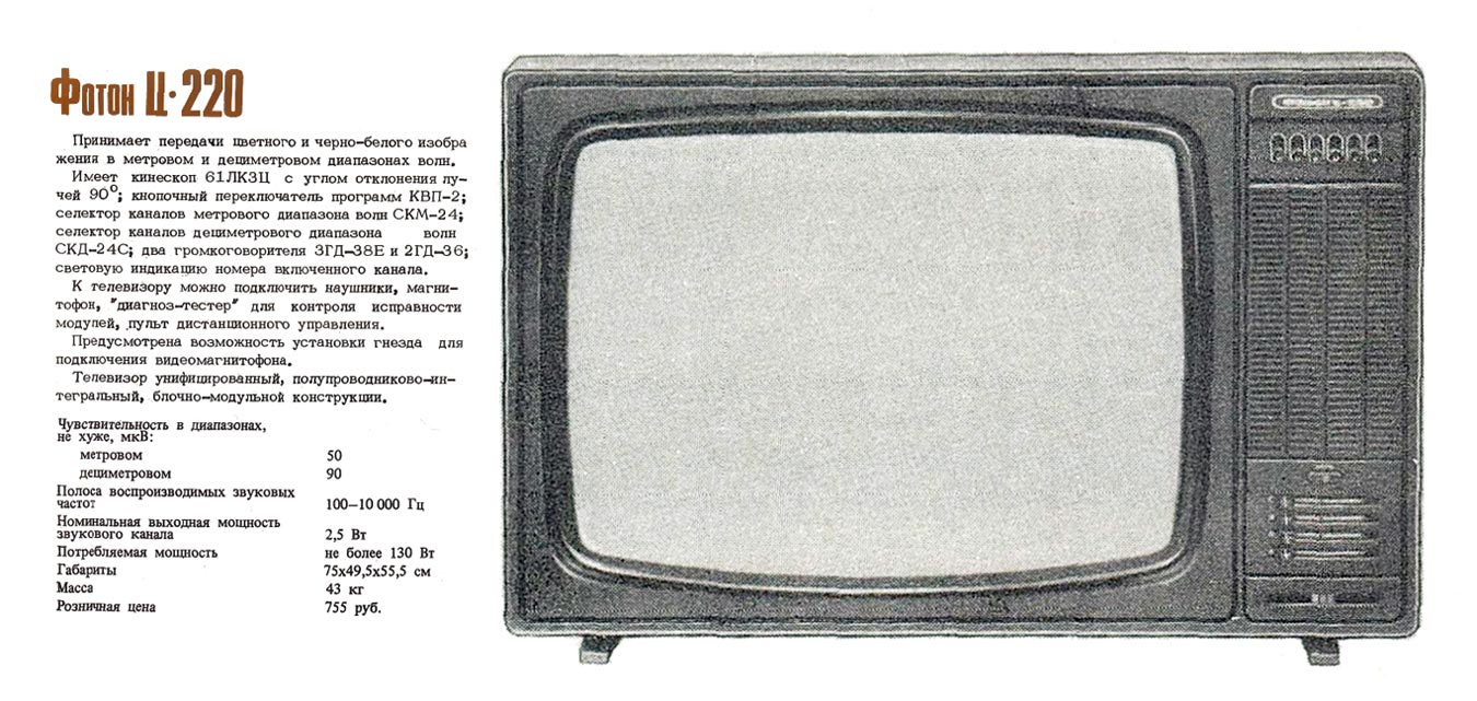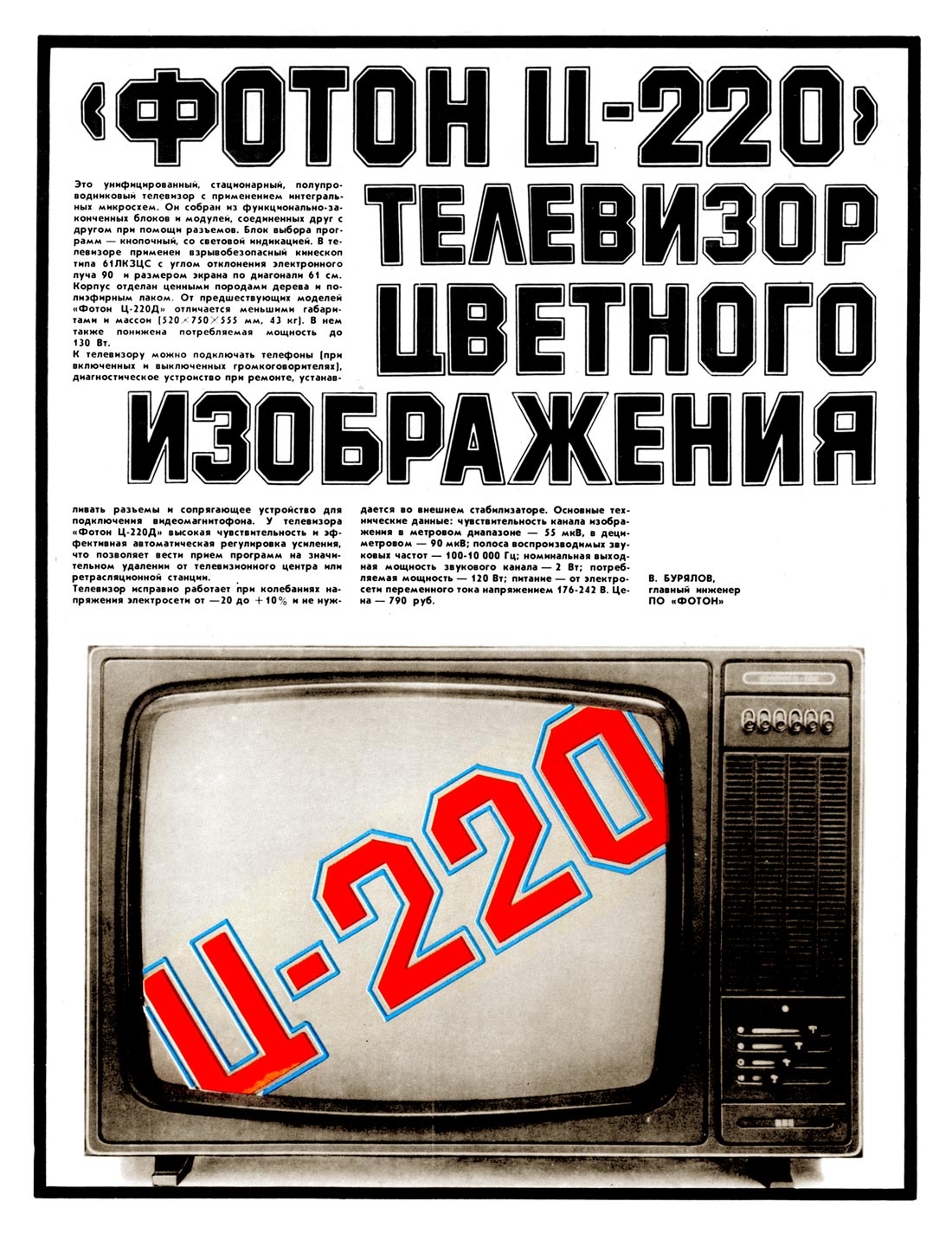 Телевизионный приёмник цветного изображения *Фотон Ц-220Д* подготовил к выпуску с 1983 года Симферопольский завод телевизоров им. 50-летия СССР.