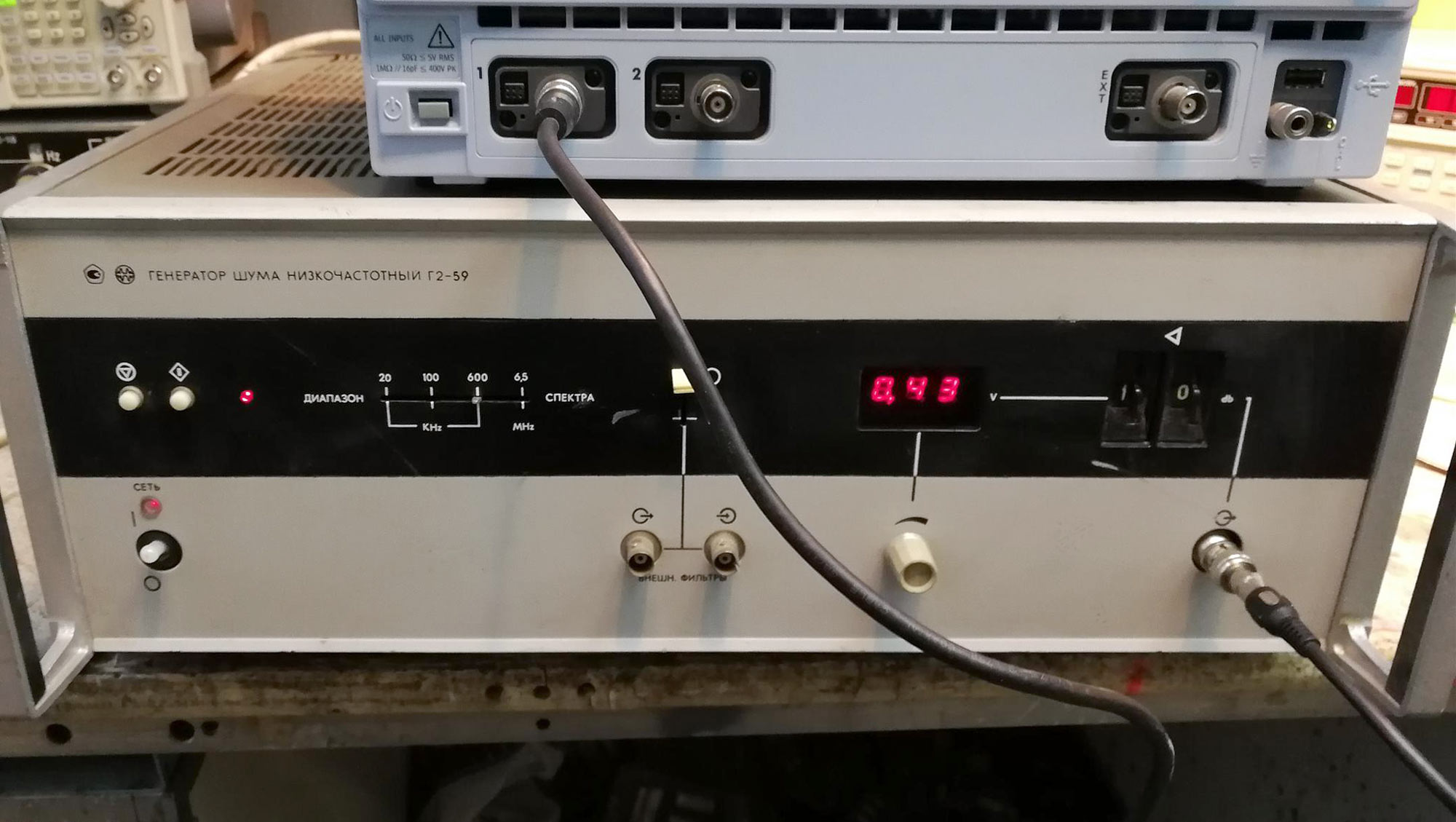 Генератор шума низкочастотный *Г2-59* выпускался предположительно с 1985 года. Генератор предназначен для использования в качестве источника электрического шумового сигнала с равномерным спектром, нормальным распределением мгновенных значений напряжения и регулируемым в широких пределах уровнем выхода при исследовании статистических процессов нелинейных искажений трактов, прохождении сложных сигналов, проверке различных устройств на помехоустойчивость, при проведении статистических корреляционных и других видов измерений в акустике, гидроакустике, медицине и других областях.