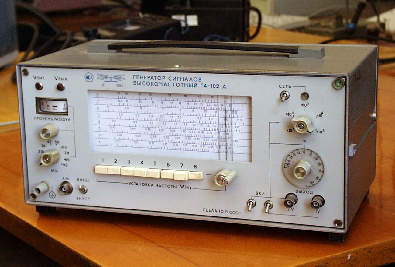 Генератор сигналов высокочастотный *Г4-102А* выпускал с I-кв 1984 года Горьковский завод имени Ленина. Генератор высокочастотных сигналов **Г4-102А** предназначен для настройки, регулировки и контроля приёмной и другой бытовой и специальной аппаратуры в пределах частот диапазонов от 0,1 до 50 мГц.