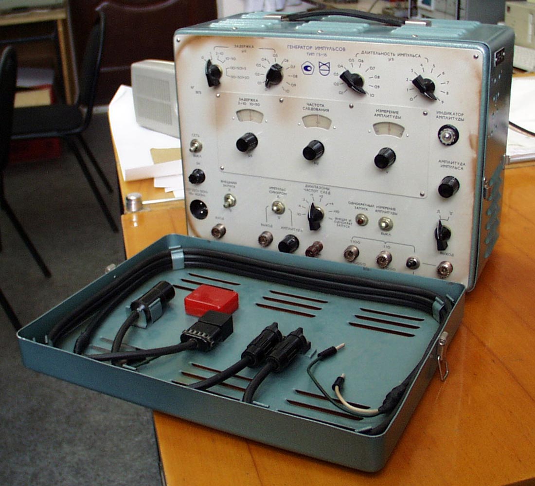 Малогабаритный генератор импульсов *Г5-15* с начала 1973 года выпускал Минский НИИ приборостроения. Малогабаритный генератор импульсов **Г5-15** предназначен для проверки, контроля или настройки различной радиотехнической аппаратуры в лабораторных и полевых условиях. Питание от сети 220 В.