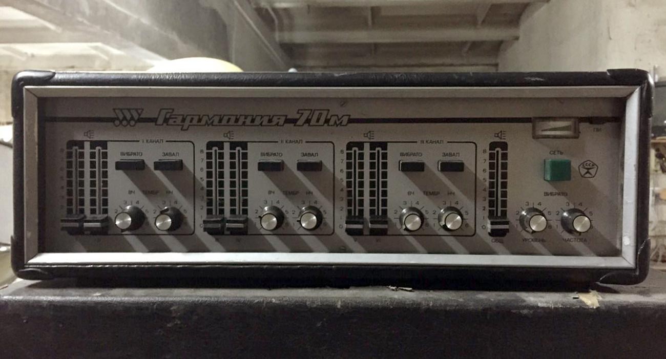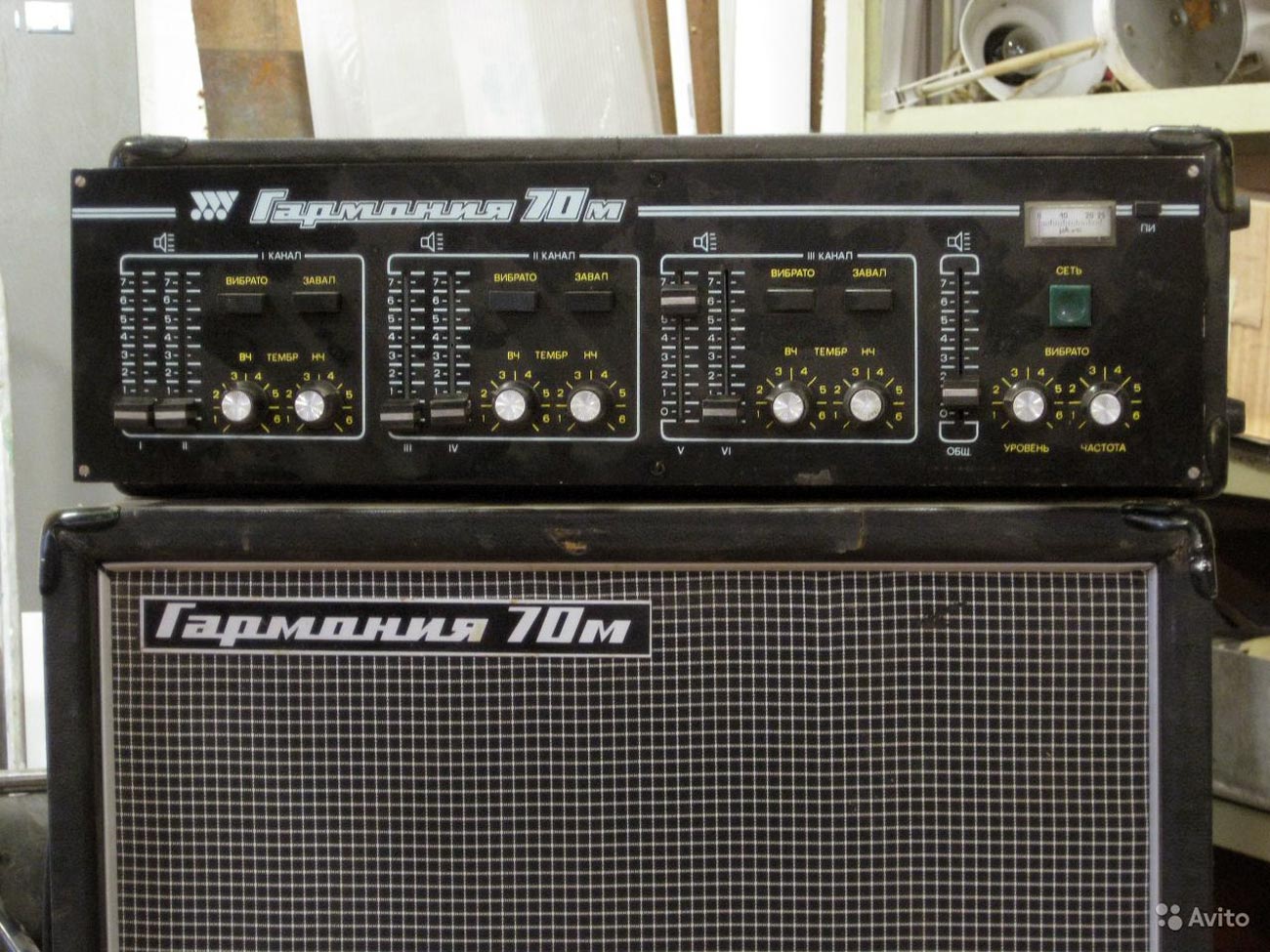 Эстрадный усилитель с АС *Гармония-70М* выпускался с 1985 года. Он предназначен для озвучивания средних залов, вмещающих примерно 200 человек. Состоит из УКУ и двух одноимённых АС. Усилитель обеспечивает высококачественное усиление сигналов от электронных музыкальных инструментов (ритм-гитары, соло-гитары, органа) и микрофонов. В усилителе предусмотренны: 6 входов под разные типы источников сигнала. Отключаемая стрелочная индикация уровня сигнала и перегрузки. Регуляторы режима **вибрато** по глубине и частоте. Кнопки включения режима **вибрато**, снижения громкости на 10 дБ, регулировки ВЧ и НЧ для каждой из трёх групп входов. Регулировка громкости каждого входа. Общая регулировка уровня громкости. Имеется два выхода на АС. Характеристики усилителя: Номинальная выходная мощность 35 Вт, максимальная долговременная мощность 70 Вт, максимальная кратковременная мощность 150 Вт. Диапазон рабочих звуковых частот 20...20000 Гц. Коэффициент гармоник 0,3%. Характеристики аккустических систем: Номинальная мощность 35 Вт. Диапазон воспроизводимых частот: 63...14000Гц. Сопротивление 6 Ом. Усилитель выпускался в нескольких вариантах оформления, несколько раз модернизировался, поэтому некоторые партии отличались от базового несколько другими техническими параметрами.