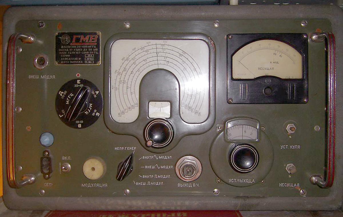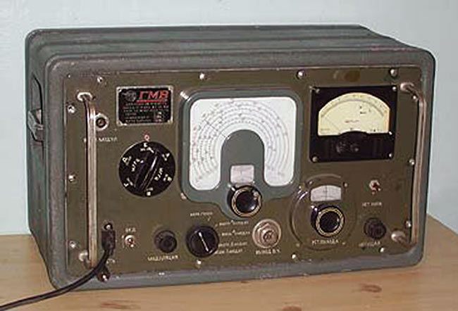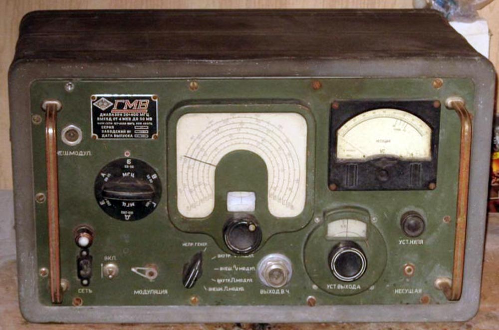 Генератор метровых волн *ГМВ* выпускался с 1955 года. Прибор *ГМВ* предназначен для проверки и настройки радиоприёмной аппаратуры УКВ диапазона, а также для проверки и настройки ВЧ и ПЧ трактов телевизоров. Прибор работает в диапазоне частот от 20 до 400 МГц. Максимальная погрешность установки частоты 1,5%. Генератор работает в следующих режимах: непрерывная генерация; внутренняя амплитудная модуляция синусоидальным напряжением с частотой 1000 Гц; внешняя амплитудная модуляция синусоидальным напряжением с частотами от 60 до 8000 Гц; внутренняя амплитудная модуляция прямоугольными импульсами длительностью около 2 микросекунд с частотой повторения 1000 Гц; внешняя модуляция прямоугольными импульсами длительностью от 4 до 20 микросекунд: при частоте повторения от 200 до 3000 Гц. Выход прибора *ГМВ* рассчитан на подключение коаксиального кабеля с волновым сопротивлением 75 Ом, на конце которого выходное напряжение может изменяться в пределах от 4 мкВ до 50 мВ. К прибору придается внешний делитель, уменьшающий выходное напряжение в 10 раз. Погрешность калибровки выходного напряжения в режиме непрерывной генерации на частоте 40 МГц не более 10%. Максимальная погрешность калибровки выходного напряжения в импульсном режиме 30%. Питание прибора осуществляется от сети переменного тока частоты 50 гц, напряжением 127 или 220 В.