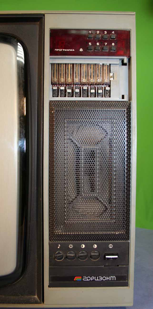 Телевизионный приёмник цветного изображения *Горизонт 61ТЦ-411/Д* с 1988 года выпускало Минское ПО *Горизонт*. Унифицированный цветной телевизор 4-го поколения **Горизонт 61ТЦ-411/Д** имеет кассетно-модульную конструкцию и собран на интегральных микросхемах и полупроводниковых приборах. В модели применён кинескоп типа 61ЛК5Ц-1 с размером диагонали экрана 61 см и видимым изображением размером 362 х 482 мм. В моделях используются 8-программное устройство типа МВП-1-3 с цифровой индикацией включенной программы, дистанционное управление (ПДУ), транзисторные строчная и кадровая развертки, импульсный источник питания, с эффективной защитой от дестабилизирующих факторов и аварийных ситуаций. Чувствительность моделей по каналу изображения в МВ диапазоне 40, ДМВ 70 мкВ. Номинальная выходная мощность канала звукового сопровождения - 2,5 Вт. Диапазон воспроизводимых звуковых частот - 80...12500 Гц. Потребляемая мощность 80 Вт. Габариты телевизора 710 х 472 х 526 мм. Масса 32 кг. Цена модели с МВ - 750 рублей, с ДМВ - 785 рублей.