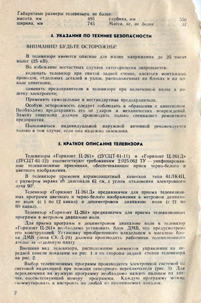 Цветной телевизионный приёмник *Горизонт Ц-261/Д* выпускался с 1985 года Минским ПО *Горизонт*. Краткое описание модели внизу.