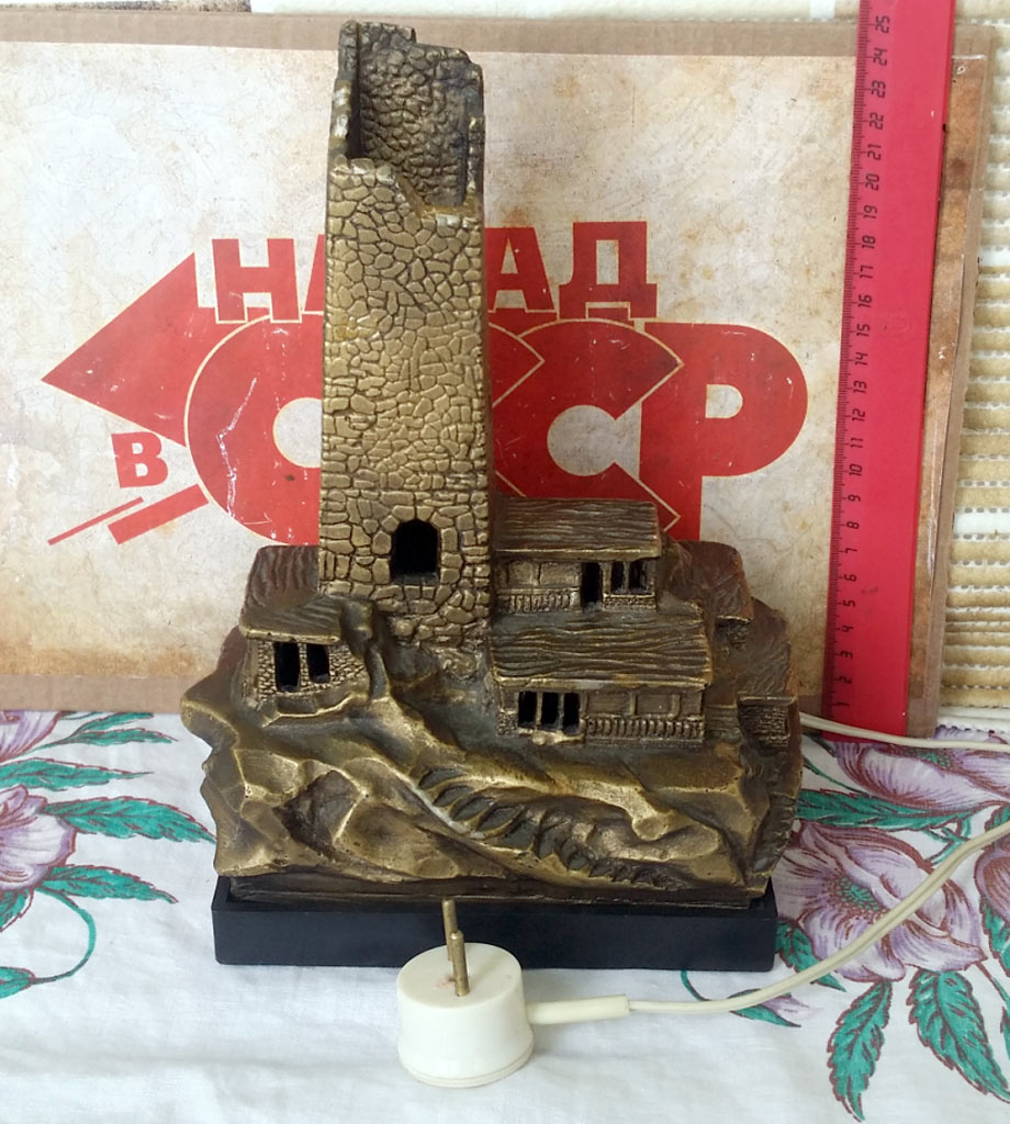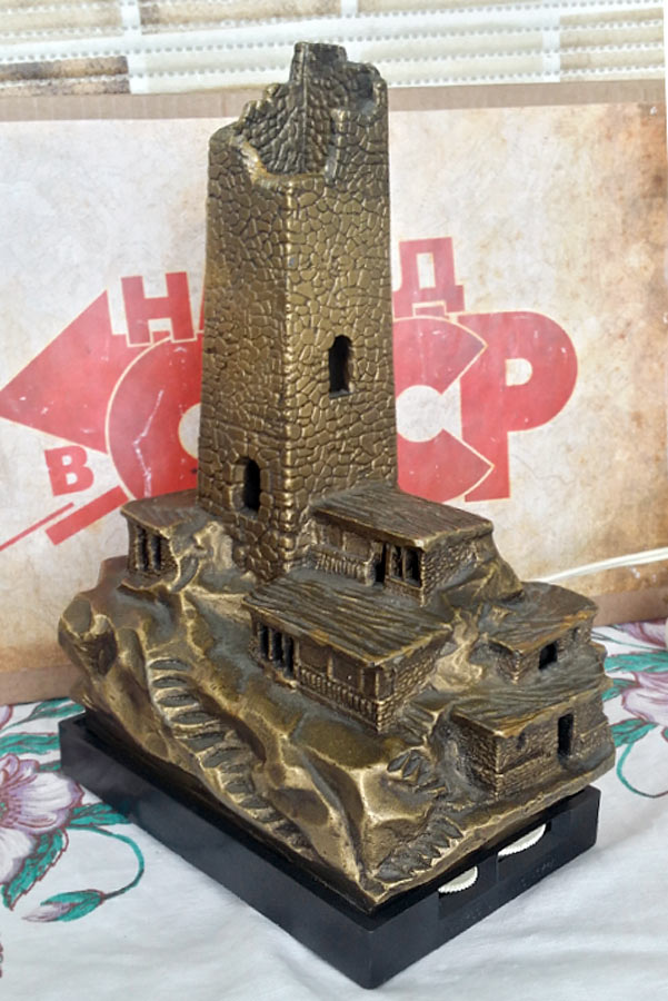 Сувенир с радиоприёмником *Горный аул* выпускался предположительно с 1986 года в цехе ширпотреба, оборонного завода *Гран*, города Орджоникидзе, ныне город Владикавказ. Радиоприёмник в сувенире применён прямого усиления собранный на 6-ти германиевых транзисторах и работающий в диапазоне ДВ. Чувствительность приёмника 15 мВ/м. Селективность 10 дБ. Максимальная выходная мощность УНЧ - 150 мВт. Диапазон воспроизводимых звуковых частот - 250...4000 Гц. Встроенный блок питания от электрической сети 220 вольт питает радиоприёмник и лампочку накаливания, которая подсвечивает окна строений.