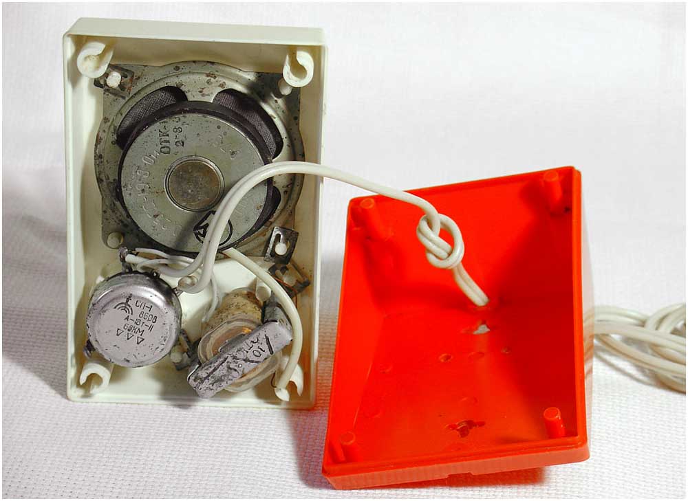 Абонентский громкоговоритель (Игрушка-конструктор) "Громкоговоритель" с I-кв 1986 года выпускал Нальчикский завод полупроводниковых приборов. Конструктор предназначен для развития трудовых и радиолюбительских навыков у детей в возрасте 12...15 лет и помогает развитию технического творчества и расширению кругозора. От себя добавлю, что не очень то улучшались радиолюбительские навыки у школьника который собирал подобную конструкцию, разве что он продвигался в познаниях несколько дальше лампочки с батарейкой к карманному фонарю. Но всё таки следует отдать должное заводу, как он мог уложиться в отпускную цену громкоговорителя 3 рубля 85 копеек, когда в розницу элементы стоили 10 руб? Добавлю так же что такие конструкторы продавались в торговой сети почему то и в собранном виде по цене 7 рублей, (стоял штампик) но с руководством конструктора игрушки. Конструктор выпускался в нескольких вариантах конструктивного и внешнего оформления.