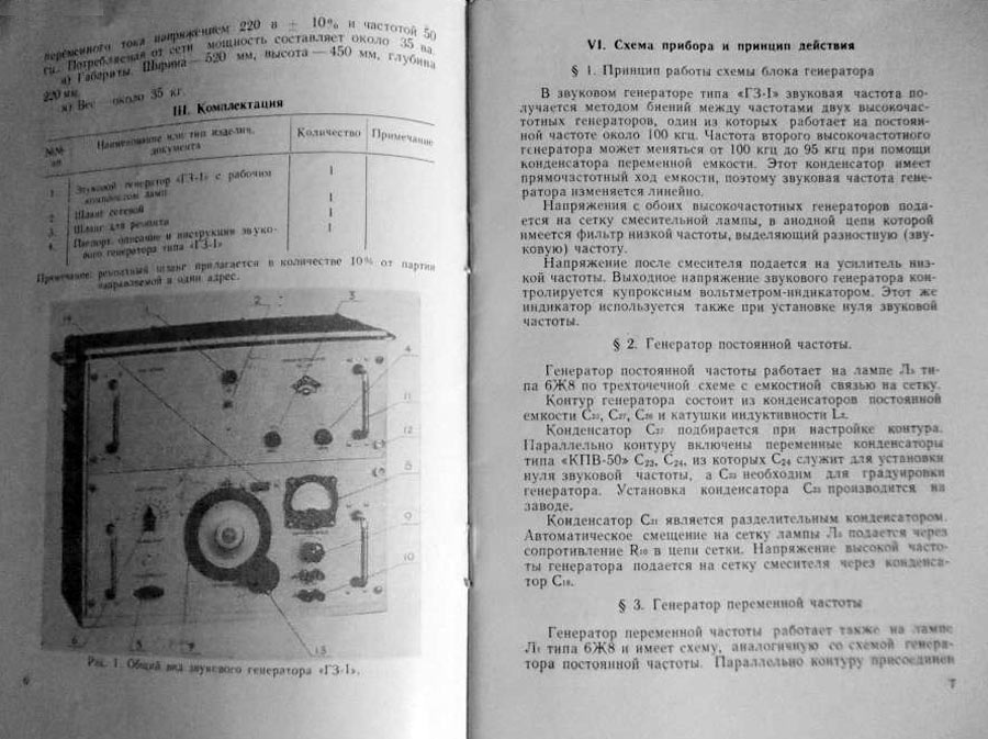 Звуковой генератор *ГЗ-1А* выпускался с 1952 года. Он является одним из первых серийных отечественных звуковых генераторов. В 1957 году генератор был модернизирован и стал именоваться *ГЗ-1М*, а с 1962 года просто *ГЗ-1*. В 1966 году ещё одна модернизация при том же наименовании (последнее изображение со справочника), но это уже был совсем другой ЗГ, данных по нём нет. Все генераторы звуковой частоты предназначены для использования в качестве источников синусоидального напряжения звуковой частоты в условиях лабораторий, заводских цехов и ремонтных мастерских. Технические характеристики генераторов (кроме гсерии 1966 года): Диапазон генерируемых частот *ГЗ-1* и *ГЗ-1М* - 18...18000 Гц. *ГЗ-1А* - 25...17000 Гц. Поддиапазоны *ГЗ-1* и *ГЗ-1М* 1 - 18...180 Гц, 2 - 180...1800 Гц, 3 - 1800...18000 Гц. *ГЗ-1А* - 1 - 25...130 Гц, 2 - 130...700 Гц, 3 - 700...3600 Гц, 4 - 3600...17000 Гц. Все генераторы имеют запас частот на краях поддиапазонов ~10%. Погрешность установки звуковой частоты ±5%. Выходная мощность на нагрузке 600 Ом не менее 1 Вт. Пределы регулировки выходного напряжения 0…25 В. Максимальный коэффициент нелинейных искажений не более 2%. Неравномерность частотной характеристики во всем диапазоне частот ±2 дБ. Питание - сеть 50 Гц / 127, 220 В. Потребляемая от сети мощность не более 75 В·А. Габаритные размеры прибора 360х300х210 мм. Масса 16 кг.