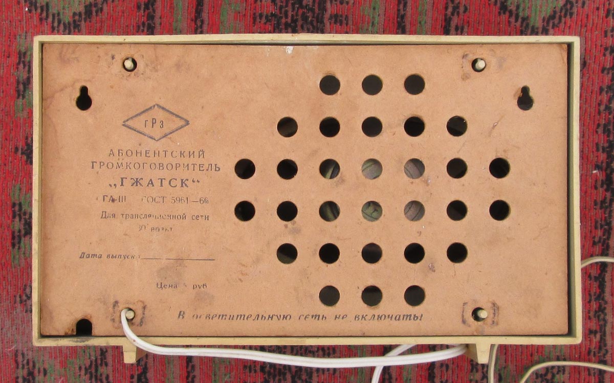 Абонентские громкоговорители "Гжатск" и "Сож" с 1967 года выпускали Гагаринский завод Динамик и Гомельский завод пластмассовых изделий. Абонентские громкоговорители "Гжатск" и "Сож" предназначены для прослушивания радиопередач ведущихся по проводной трансляционной сети. В моделях применён громкоговоритель 1ГД-28 или 1ГД-18. АГ рассчитаны на приём одной радиопрограммы передаваемой по проводным сетям с напряжением 30 вольт и подводимой мощностью 0,15 ватт. Диапазон звуковых частот 160...5000 Гц. Среднее звуковое давление 0,25 H/m3. Габариты любого АГ - 265х171х85 мм, масса 1,0 кг. Во всём схожие с описанными, абонентские громкоговорители - близнецы выпускались различными заводами страны и отличались лишь наименованием, цветом корпуса и размерами регулятора громкости.
