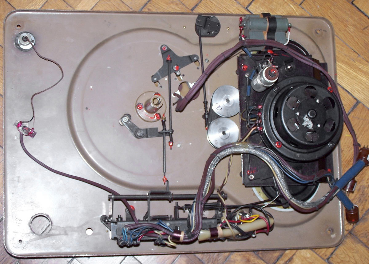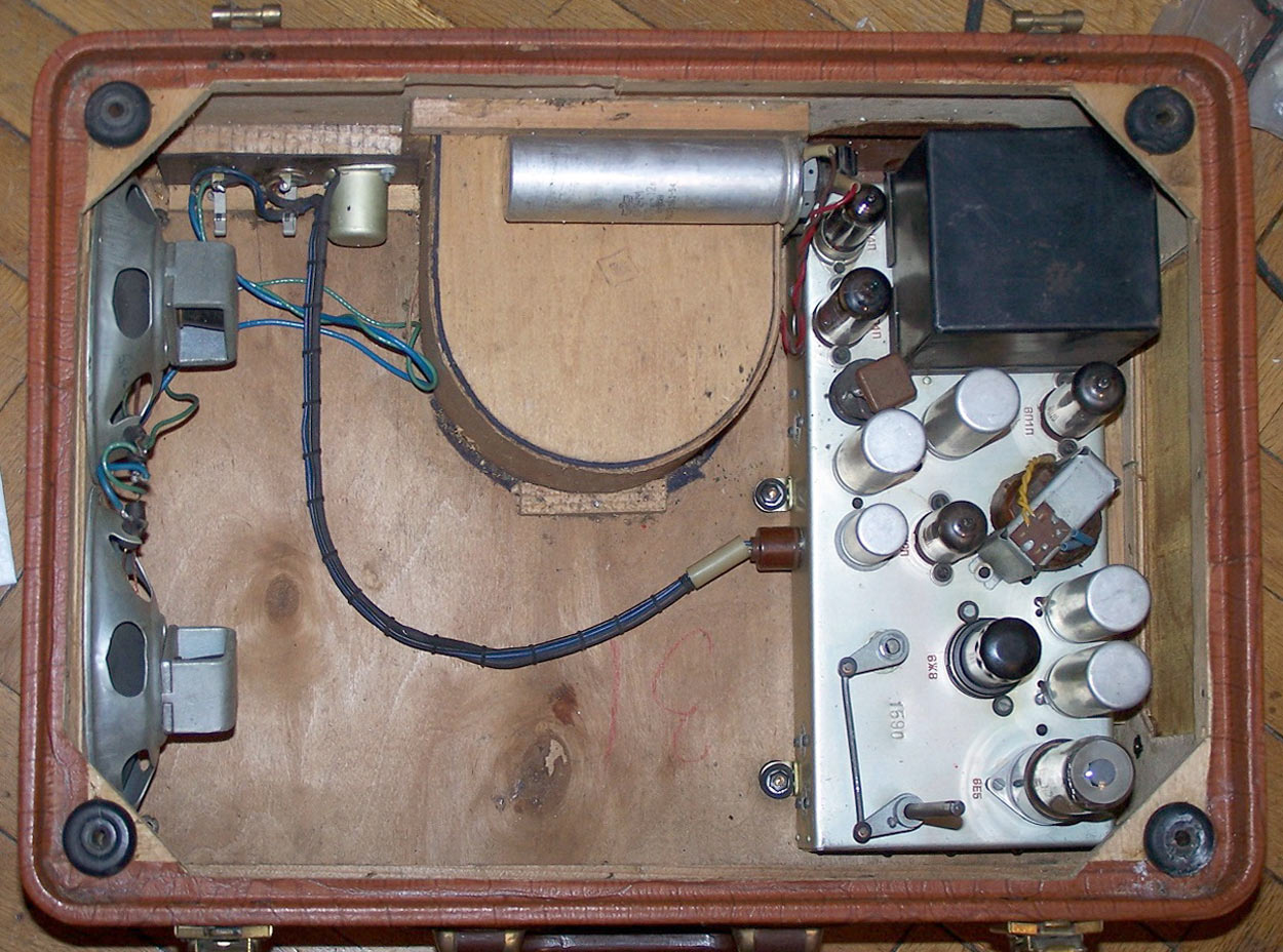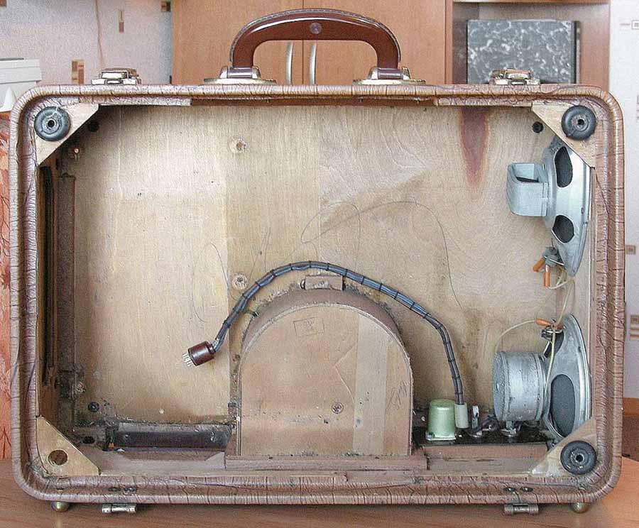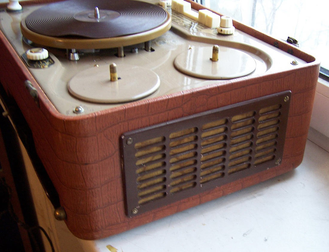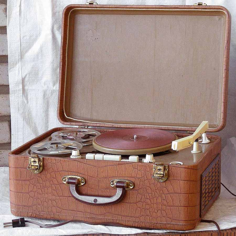 Магнитофон-граммофон *Яуза* (первенец завода) с 1956 года выпускал Московский ЭМЗ №1. Аппарат состоит из магнитофона и проигрывателя пластинок. Магнитофон рассчитан на запись и воспроизведение 2-х дорожечных фонограмм. ЛПМ имеет 2 скорости: 19,5 см/сек и нестандартную 8,13 см/сек, для записи речи. Время записи на 2-х дорожках на 1-й скорости 30 мин, на 2-й 1 час.10 мин. Катушки вмещают 180 метров магнитной ленты типа 1. Есть ускоренная перемотка ленты (2,5 мин.) в прямом и обратном направлениях. ЛПМ приводится в действие двигателем АД-2 и управляется клавишным переключателем. На выходе включены два громкоговорителя 1ГД-9. Полоса частот на 1-й скорости 70....7000 Гц, на 2-й 100...4000 Гц. Есть разъём для дополнительного громкоговорителя и вход адаптера. ЭП двухскоростной, с пьезокерамическим звукоснимателем с 2-мя долговечными корундовыми иглами для обычных и долгоиграющих пластинок. Питание от сети 110, 127 и 220 В. Потребляемая мощность ~ 80 Вт. Установка размещена в переносном футляре размерами 470х360х215 мм, оклеенном дермантином. В комплекте пьезоэлектрический микрофон. Масса модели 18 кг. На 1-м рисунке нулевой вариант аппарата, который в серию не пошёл. В серию пошёл 1-й вариант, он на всех фото. Был и 2-й вариант, отличавшийся громкоговорителями, изменениями в схеме, монтаже, ЛПМ и ЭПУ. Внешний вид был как у 1-го варианта. Радио №8/1963 ст.48