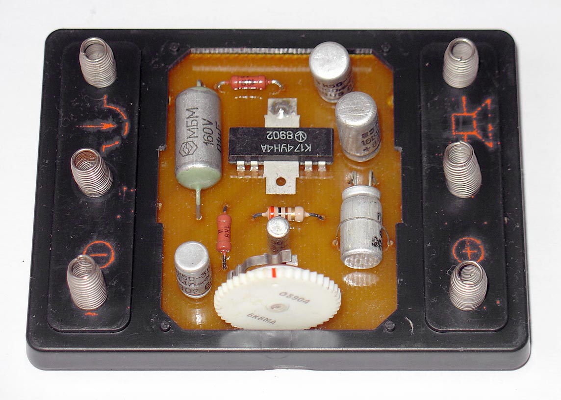 Игрушка *Усилитель низкой частоты* с 1989 года выпускал Павлодарский завод *Весна*. Игрушка УНЧ предназначена для технического творчества детей среднего и старшего школьного возраста знакомых с основами радиоэлектроники и для начинающих радиолюбителей. Игрушка представляет собой модульный блок, который может быть использован для усиления громкости звукового сигнала в любительских конструкциях. Его номинальная выходная мощность не менее 0,25, максимальная мощность 0,6 Вт. Ток потребления при отсутствии сигнала 10 мА. Максимальный ток потребления при нагрузке 8 Ом - 100 мА. Входное сопротивление 10 кОм. Напряжение входного сигнала 0,14 В. Габариты усилителя 40x07x30 мм. Масса 0,15 кг.