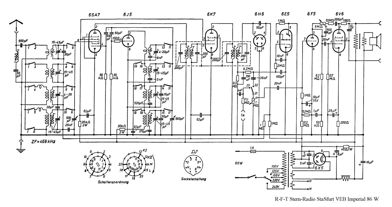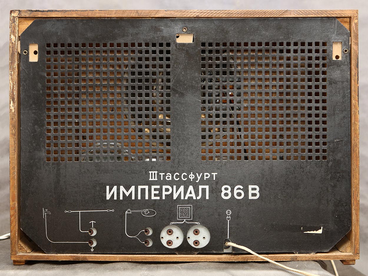 Сетевой ламповый радиоприемник *Штассфурт Империал 86В* выпускался фирмой *RFT*, Германия (ГДР) с 1948 года. Приёмник предположительно до 1951 года поставлялся в СССР, поэтому и находится на сайте. Информация о модели имеется в интернете.