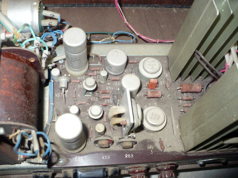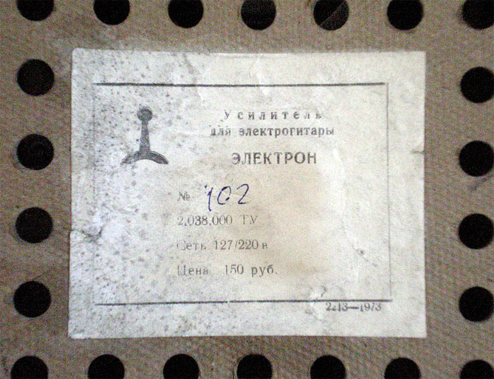 Усилители для электрогитары *Электрон* и *Импульс-20* с 1973 и 1978 года соответственно выпускал Херсонский завод п/п. Усилитель *Импульс-20* отличается схемой. ТХ по усилителям пока нет. Вот описание усилителя *Электрон* с сайта http://oecc.ru/kombo/elektron-73.php: Данный экземпляр, выпущенный в 1974 году, имеет заводской номер 402, из чего можно сделать косвенный вывод, что производство данной модели не носило массовый характер. Конструкция усилителя *Электрон* проста: на деревянную раму, снабжённую парой деревянных ножек и двумя фанерованными «мебельными» щёчками, смонтированы блок регулировок и, собственно, шасси усилительной части. На лицевой стороне, затянутой жёлтой радиотканью, установлены два широкополосных динамика 1ГД-35 и размещён шильдик с логотипом. На верхней панели, покрытой чёрной эмалью находятся: кнопка включения питания с индикатором, кнопка включения амплитудного вибрато, кнопка ВЧ, являющаяся аналогом современного «Presence», регуляторы громкости, фильтров ВЧ и НЧ, регуляторы управления частотой и глубиной вибрато. На задней панели установлены два гнезда СГ-5, соответствующие современным входам «Low» и «High». В нижней части комбика находится плата, на которой смонтированы переключатель напряжений (110/127/220), сетевое гнездо, два предохранителя по 1А и гнездо СГ-5 для подключения дополнительного громкоговорителя. Габариты ЭЛЕКТРОНА 54х33х15 см, масса 9 кг. Для удобства переноски устройство снабжено подпружиненной выдвижной ручкой в верхней части. Стоило это чудо 150 полновесных советских рублей, т.е., несколько выше средней месячной зарплаты инженера. С точки зрения эксплуатации комбик вызывает противоречивые чувства. С одной стороны, ЭЛЕКТРОН обладает своим совершенно уникальным голосом, найти аналоги которому среди известных брендов, типа FENDER, VOX, MARSHALL и т.д., не представляется возможным. И дело вовсе не в том, что это «совок» и «колхоз», а в том, что просто структура звука ни на что не похожа – притом, что это «тот самый звук», звук 60-х, безотносительно к «государственной» привязке. С другой стороны, по современным меркам, ЭЛЕКТРОН, конечно, совершенно не подходит для исполнения альтернативы, хеви-метал или гранджа – его епархия сёрф, рокабилли, ритм-н-блюз и мод-рок. Не тяжелее. Но в данной категории он, безусловно, достойный боец. Мощности его достаточно, чтобы подзвучивать гитару на школьных вечерах, в небольших кафе и т.д. Для домашнего использования - сугубо в зависимости от отношений с соседями. Из недостатков можно отметить высокий уровень фона и то, что при увеличении глубины вибрато, сигнал генератора задающей частоты всё больше проникает в тракт воспроизведения так, что при полностью выкрученной ручке «Глубина» усилитель может использоваться для эмуляции звука летящего вертолёта.