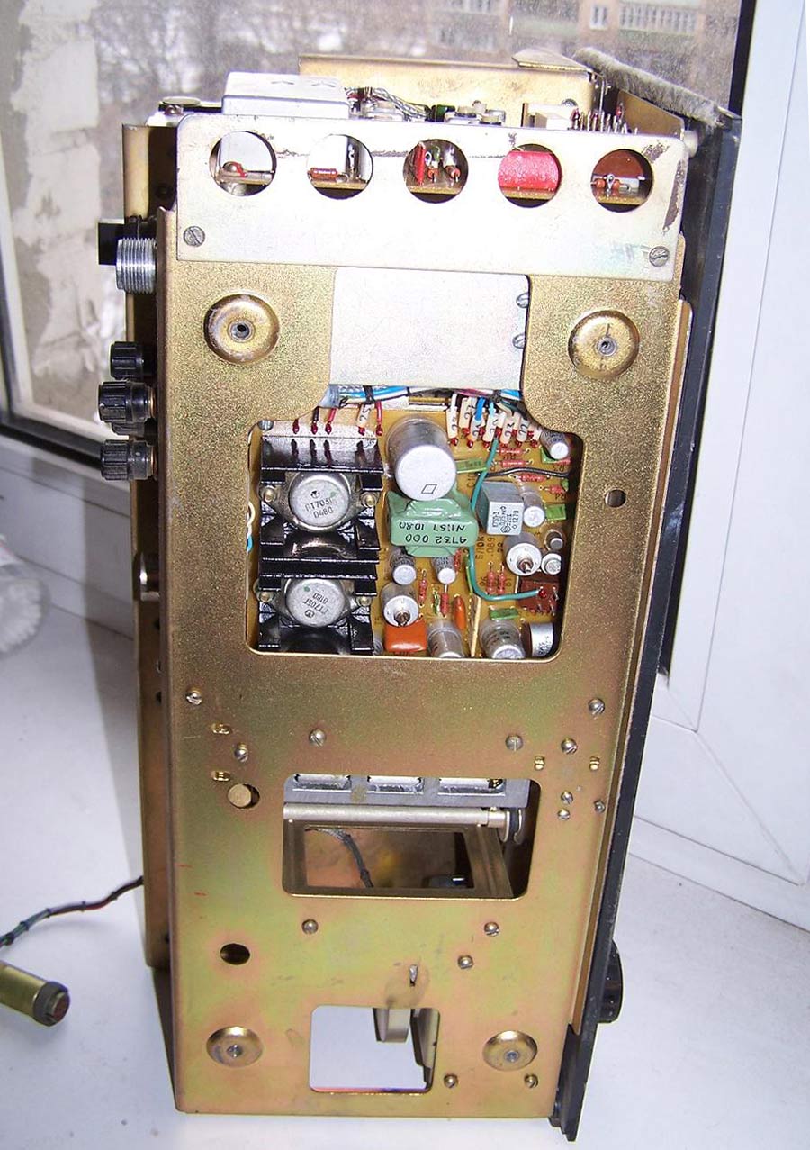 Стационарный транзисторный радиоприёмник *Интеграл* с I-кв 1980 года выпускал Днепропетровский радиозавод. Всеволновый войсковой приёмник *Интеграл* с универсальным питанием предназначен для приёма широковещательных передач с амплитудной модуляцией в диапазонах ДВ, СВ и KB и c частотной модуляцией в диапазоне УКВ. Приёмник предназначен для комплектации войсковых радиотрансляционных узлов или использовании его в составе походных технических средств пропаганды. Радиоприём осуществляется на ферритовую антенну в диапазонах ДВ, СВ и телескопическую в диапазонах KB и УКВ. Есть возможность приёма на всех диапазонах на внешние антенны типа **Наклонный луч** или **Штырь**. При работе от внешней антенны ферритовая антенна отключается. В приёмнике имеются гнёзда внешней антенны и заземления; источника питания; нагрузки; УКВ антенны; усилителя или магнитофона на запись; телефонов с одновременным отключением громкоговорителей. Для уверенного радиоприёма в схеме имеется: устройство защиты входа от перегрузок; бесшумная настройка с регулируемым порогом; переключение полосы УПЧ АМ на 6, 9 и 12 кГц; световой индикатор точной настройки на станцию; двойное преобразование частоты в диапазонах КВ. Для удобства предусмотрены: три шкалы с подсветкой соответствующего работающего диапазона; механический фиксатор настройки для устранения расстройки при воздействии вибрационных нагрузок; есть дежурный режим работы для уменьшения расхода батарей при длительной и непрерывной эксплуатации приёмника; индикатор разряда батарей.