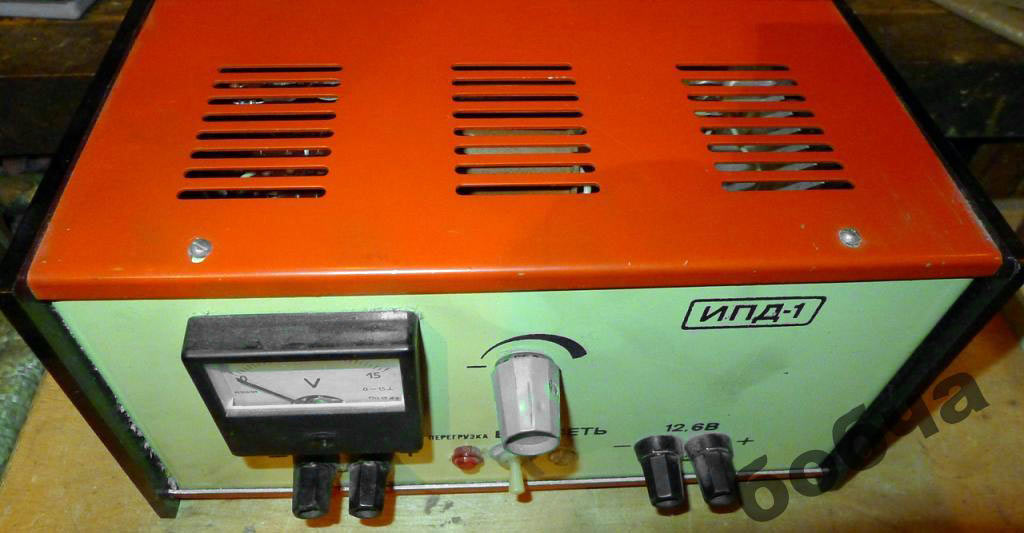 Источник питания демонстрационный *ИПД-1* выпускался предположительно с 1967 года. Источник питания предназначен для питания различных электрических схем и приборов, используемых при проведении демонстрационных опытов на уроках физики в общеобразовательной школе и (или) в других учебных заведениях. Величина регулируемого напряжения 0...12,6 вольт - контролируется по вольтметру, установленному на передней панели корпуса. На этой же панели размещены ручка регулятора выходного стабилизированного напряжения, тумблер для включения прибора, индикатор подключения к электросети и индикатор перегрузки стабилизированного выхода. Индикатор перегрузки срабатывает при превышении током нагрузки величины 2 А.