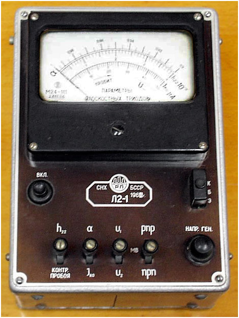 Измеритель параметров транзисторов *ИПТ-1* (Л2-1) с 1957 и с 1964 года соответственно выпускал Минский завод *Радиоприбор*. Прибор изначально выпускался под наименованием **ИПТ-1** затем согласно новому ГОСТу был переименован в **Л2-1**. Он предназначен для быстрого определения годности маломощных транзисторов и измерения их основных параметров. Питание осуществляется от 2-х батарей КБС-Л-0,5 общим напряжением 9 вольт. Габариты прибора 210х150х90 мм. Его масса 2 кг.