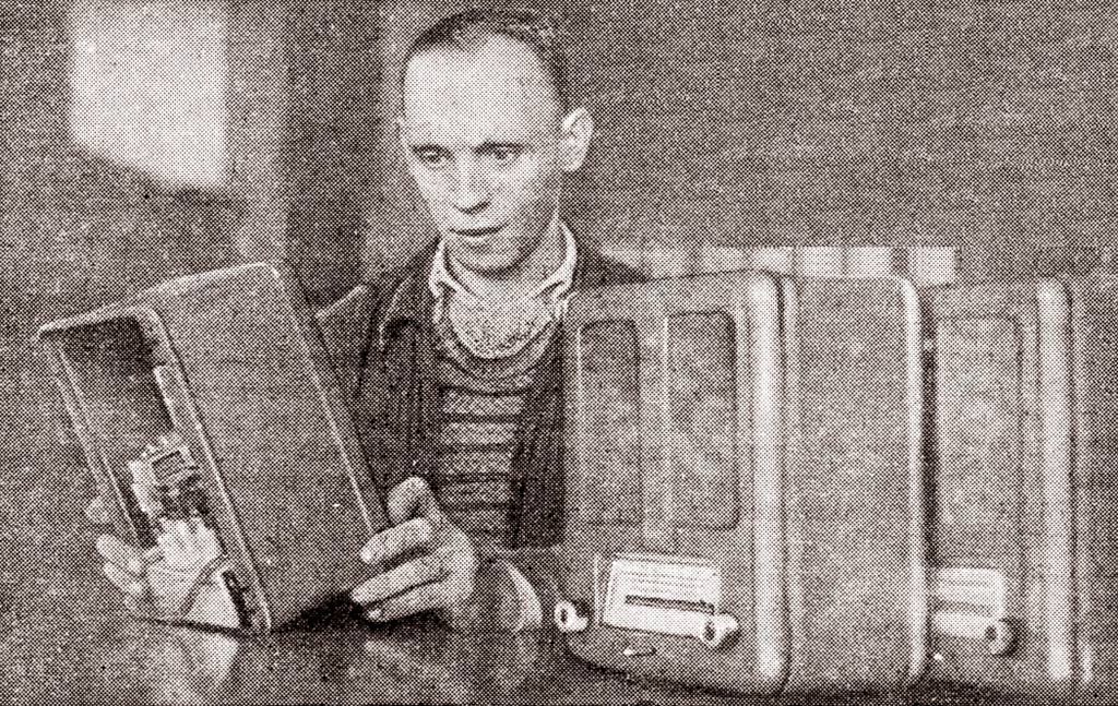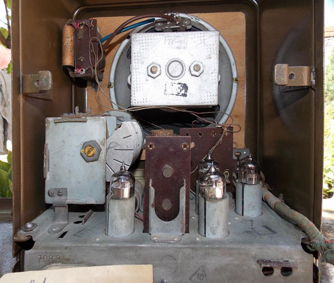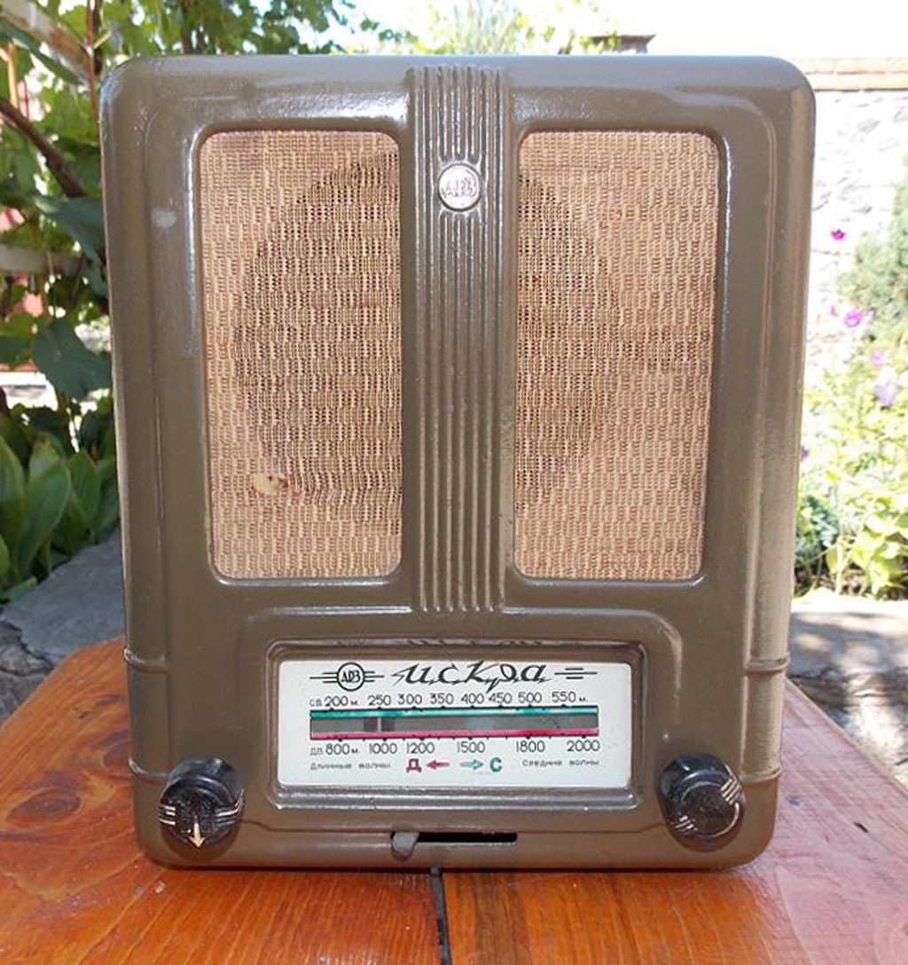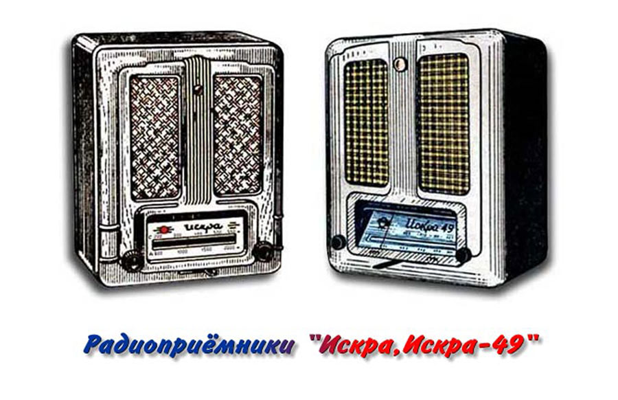 Радиоприёмник батарейный **Искра** разработан и опытно выпущен на Александровском радиозаводе в конце 1949 года, а массово выпускался с 1950 года. В разработке приёмника участвовали конструкторы Свердловского завода автоматики. Основой стал приёмник **АРЗ-49**. **Искра** один из массовых батарейных приёмников. Это четырёхламповый супергетеродин. Диапазоны: ДВ - 2000...730 м и СВ - 580...188 м. Чувствительность 400 мкВ. ПЧ = 110 кГц. Выходная мощность на громкоговорителе 1ГД-2 - 150 мВт. Диапазон воспроизводимых частот 200...3000 Гц. Для питания используются один из двух комплектов батарей. Один на 1000 часов работы с батареей накала БНС-МВД-400, двумя анодно-сеточными батареями ГСГ-60С-8 и облегчённый на 300 часов, с батареей БНС-МВД-95 и двумя 5СГ-60С-2,5. Под шкалой расположен рычажок переключателя диапазонов. Левая ручка - регулятор громкости и выключатель питания. Правая - настройка на радиостанцию. Корпус из листовой штампованной стали. Габариты приёмника 214х260х148 мм. Вес 4,3 кг.
