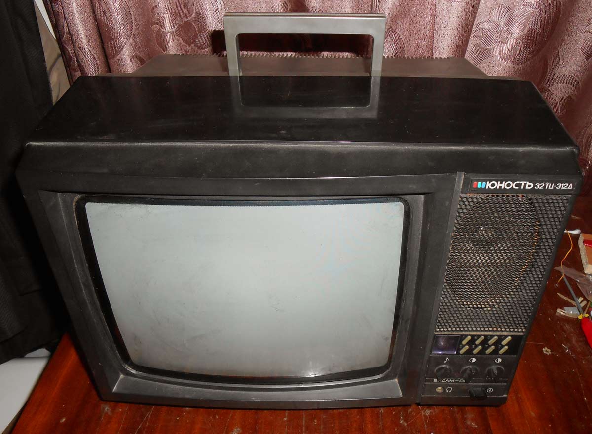 Цветной телевизор *Юность 32ТЦ-312Д* с 1992 года выпускал Московский радиотехнический завод. **Юность 32ТЦ-312Д** - унифицированный телевизор для приёма программ цветного изображения и звукового сопровождения в диапазонах МВ и ДМВ в системах ПАЛ и СЕКАМ. Селектор каналов 8-программный, сенсорный с заранее настроенными программами. Конструкция модели кассетно-модульная. В телевизоре применен кинескоп 32ЛК2Ц с размером экрана по диагонали 32 см и углом отклонения лучей 90°. Чувствительность в MB/ДМВ диапазонах 40/70 мкВ. Разрешающая способность 350 линий. Номинальная выходная мощность 0,5 Вт. Питание от сети 220 В. Потребляемая от сети мощность 60 Вт. Габариты телевизора 300х450х350 мм. Его масса 13 кг. ТВ имеет вход для воспроизведения видеопрограмм с видеомагнитофона и записи или воспроизведения звуковых фонограмм обычным магнитофоном. Телевизор имеет вход RGB для подключения бытового компьютера (например Синклер) выполненный на разъёме СГ-8. Распайка позволяла использовать штекер СШ-7 (центральный контакт не задействован).
