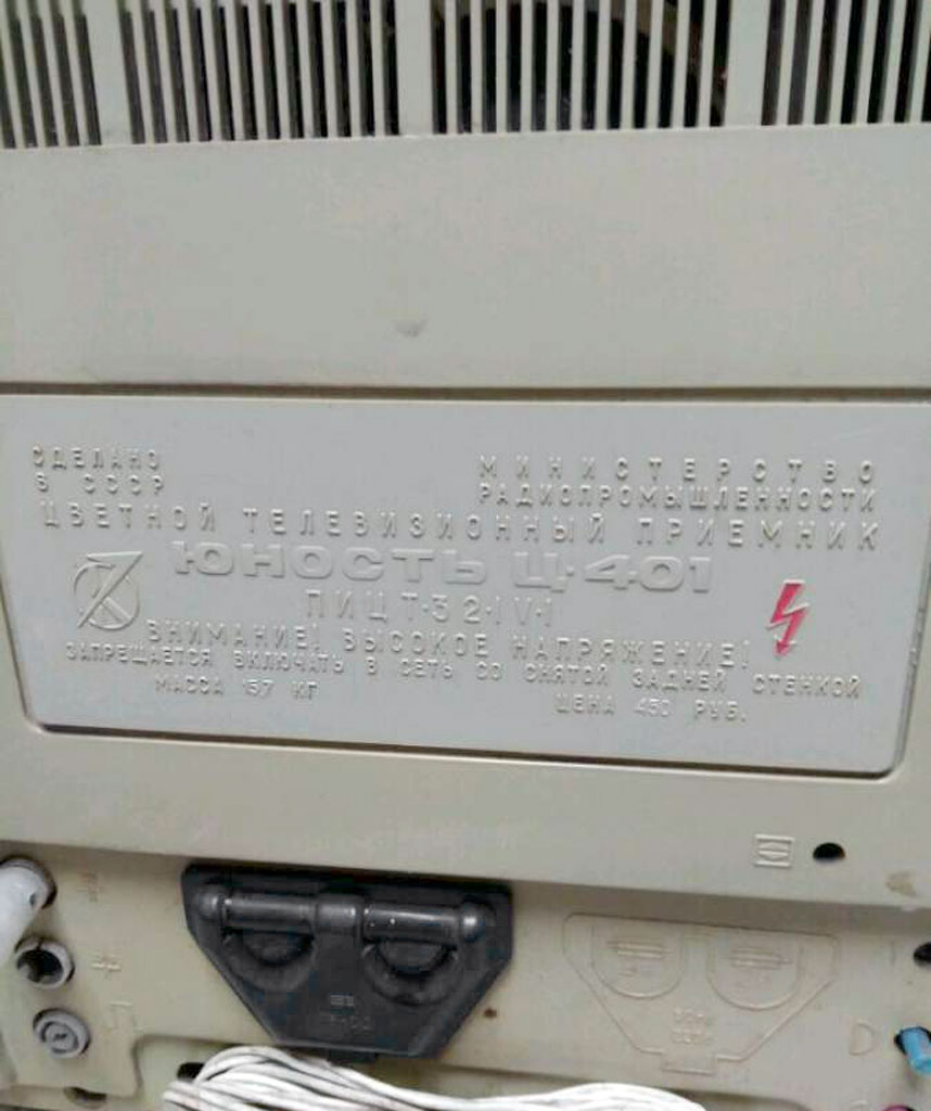 Малогабаритный цветной телевизор *Юность Ц-401* с 1978 года выпускал Московский радиотехнический завод. Полупроводниково-интегральный телевизор **Юность Ц-401** имеет кинескоп с диагональю 32 см. со щелевой маской и самосведением лучей. Телевизор работает на любом из 12-ти каналов МВ, а при установке блока СКД и ДМВ. Чувствительность 100 мкВ. Полоса воспроизводимых частот 250...7100 Гц. Номинальная выходная мощность 1 Вт. Питание от сети 220 В или аккумулятора. Потребляемая от сети мощность 80 Вт. Габариты телевизора 386х330х300 мм. Вес 17 кг. По такой же конструкции, схеме и оформлению Московский электроламповый завод с осени 1978 года выпускал телевизоры **Электроника Ц-401**.