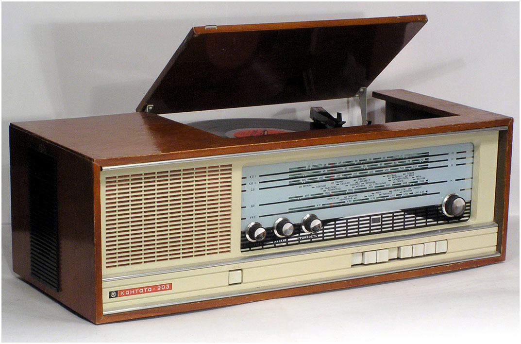 Радиола сетевая ламповая *Кантата-203* с начала 1972 года выпускалась на Муромским заводе РИП. Радиола состоит из всеволнового, супергетеродинного радиоприёмника второго класса и электропроигрывающего устройства III-ЭПУ-28М, позднее III-ЭПУ-38/М. Радиола работает в диапазонах: ДВ, СВ и КВ-1, КВ-2 и УКВ-ЧМ диапазоне. Чувствительность в ДВ, СВ 150 мкВ, поддиапазонах КВ - 200 мкВ, УКВ - 20 мкв. Избирательность по соседнему каналу 30 дБ. Полоса рабочих частот в тракте AM - 100...4000 Гц, УКВ-ЧМ и ЭПУ 100...10000 Гц. Номинальная выходная мощность усилителя 1,5, максимальная 3 Вт. Питание от сети переменного тока 127 или 220 в. Радиолы с 1975 года рассчитаны на сеть 220 в. Потребляемая мощность на приёме 60 Вт, работе ЭПУ 75 Вт. Размеры радиолы 660х315х245 мм, вес 20 кг.