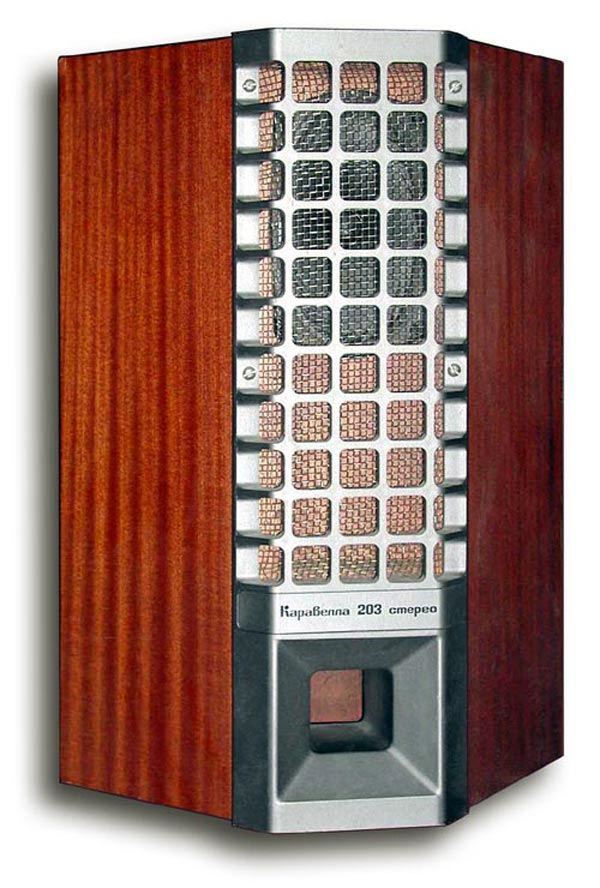 Акустическая система *Каравеллла-203* выпускалась с начала 1982 года Кировским заводом *Ладога*. АС входила в комплект электрофона *Каравелла-203*. Технические характеристики: Широкополосная полочная АС с фазоинвертором. Диапазон воспроизводимых частот: 80...16000 Гц. Чувствительность: 92 дБ. Сопротивление: 8 Ом. Паспортная мощность: 3 Вт. Долговременная мощность: 8 Вт. Предельная кратковременная мощность: 15 Вт. Размеры АС 475х332х165 мм. Масса 6 кг.