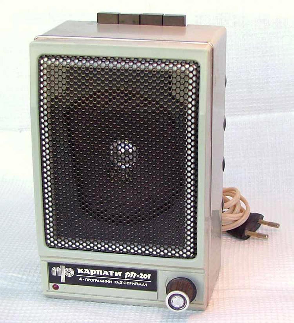 Стационарный транзисторный радиоприёмник *Карпаты РП-201* с 1994 по 1996 год выпускало ПО Карпаты, г. Ивано-Франковск. Стационарный УКВ радиоприёмник *Карпаты РП-201* работает в радиовещательном диапазоне с частотами от 65,8 до 73 МГц. Приёмник имеет четыре фиксированные настройки на заранее выбранные радиостанции. Чувствительность - 10 мкВ. Номинальная выходная мощность - 0,5 Вт. Диапазон воспроизводимых звуковых частот 150...10000 Гц. Питание от сети. В качестве антенны используется отрезок провода. Габариты приёмника 110х180х85 мм. Вес 800 гр.