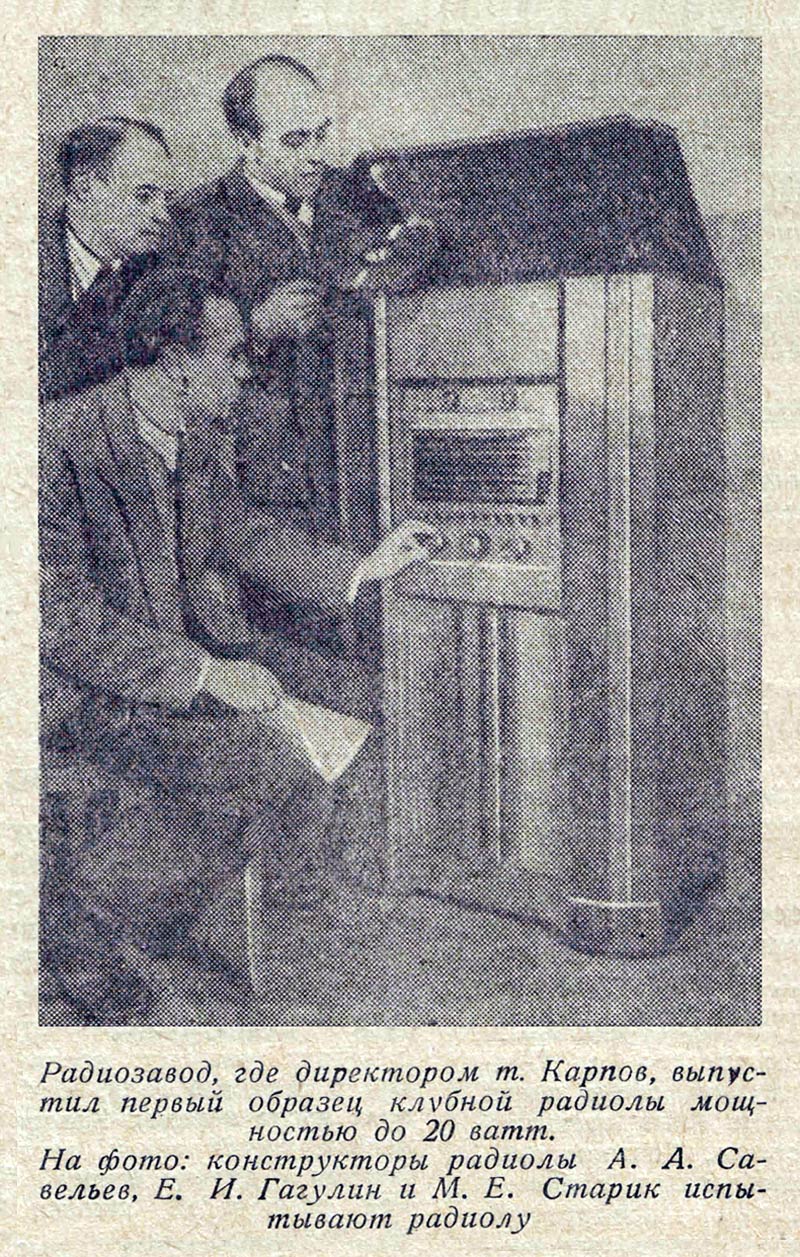 *Клубная радиола* разработана и изготовлена опытным образцом в 1947 году.