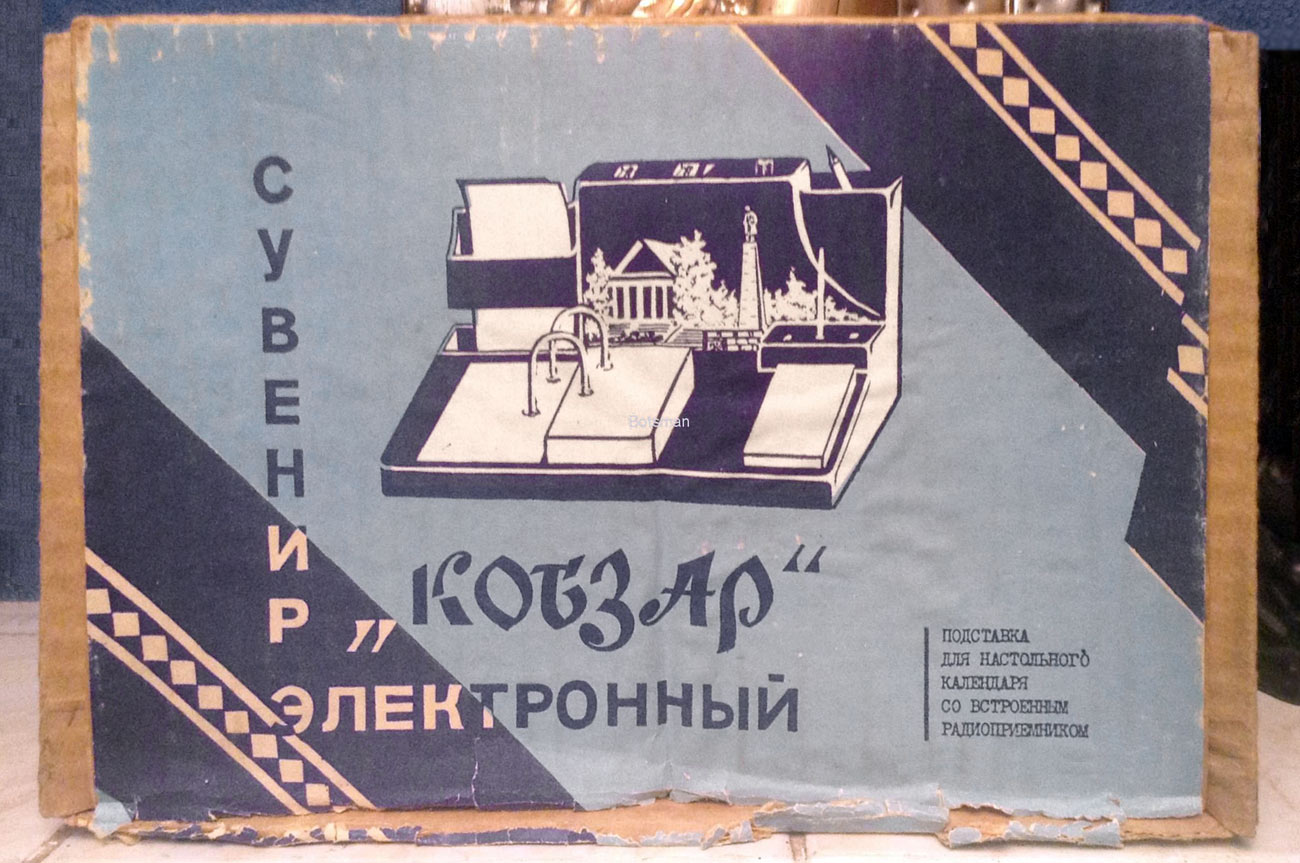 Сувенир электронный *Кобзар* выпускался с 1985 года Каневским заводом *Магнит*, Черкасская область. Представляет собой пластмассовую подставку под перекидной календарь, с вмонтированным радиоприёмником для приёма радиостанций в 2-х поддиапазонах СВ. Радиоприёмник в сувенире прямого усиления на микросхеме 140УД1А, с электронной настройкой варикапом и УНЧ на транзисторах или микросхеме К174УН4.