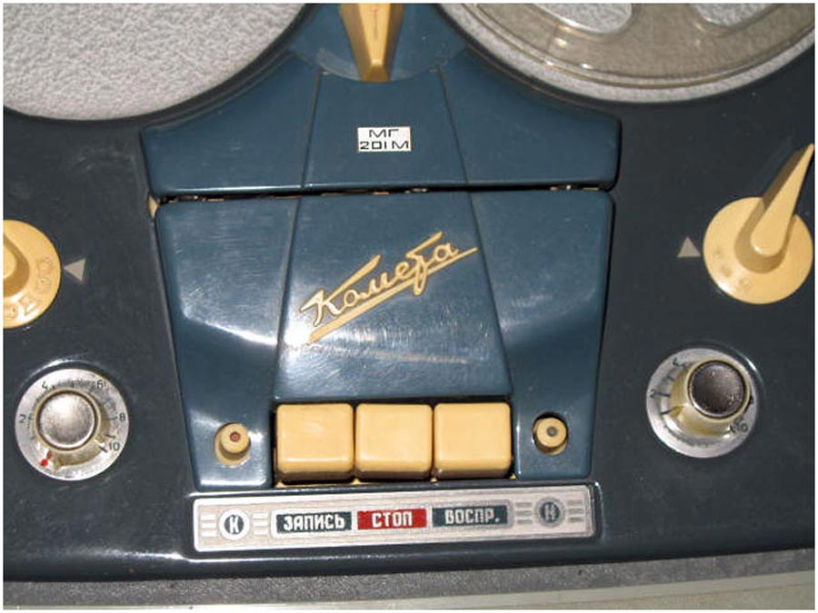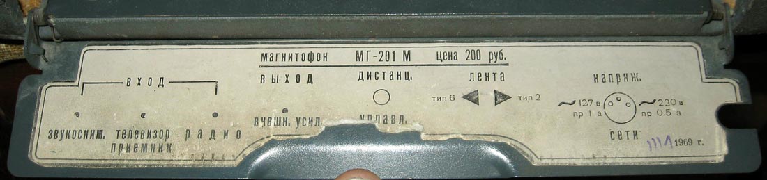 Катушечный магнитофон *Комета МГ-201М* с I-кв 1968 года выпускал Новосибирский завод точного машиностроения. Сетевой катушечный магнитофон 2 класса **Комета МГ-201М** является модернизацией предыдущей модели **Комета МГ-201**. Новый магнитофон по конструкции и внешнему оформлению практически не отличается от предыдущего. Основным отличием модели стал перенос индикатора уровня записи в правую часть фальшпанели, с его заменой с 6Е5С на 6Е1П, а также появление переключателя входов на месте, где раньше был индикатор уровня записи. В магнитофоне была усовершенствована акустическая система, изменениям подверглась электрическая схема магнитофона. Усовершенствован и лентопротяжный механизм в связи с возможностью применения новой, более тонкой магнитной ленты типа 10. При записи на магнитную ленту этого типа диапазон частот составляет на скорости 4,76 см/сек - 63...7000 Гц, на скорости 9,53 см/сек 63...12500 Гц и на скорости 19,05 см/сек 40...14000 Гц. При применении магнитных лент типа 6 и 9 верхний предел частот снижается соответственно на 2-3 тысячи Гц. Старые магнитные ленты типов СН или 6 применять не рекомендуется из-за резкого ухудшения АЧХ и очень быстрого износа магнитных головок.