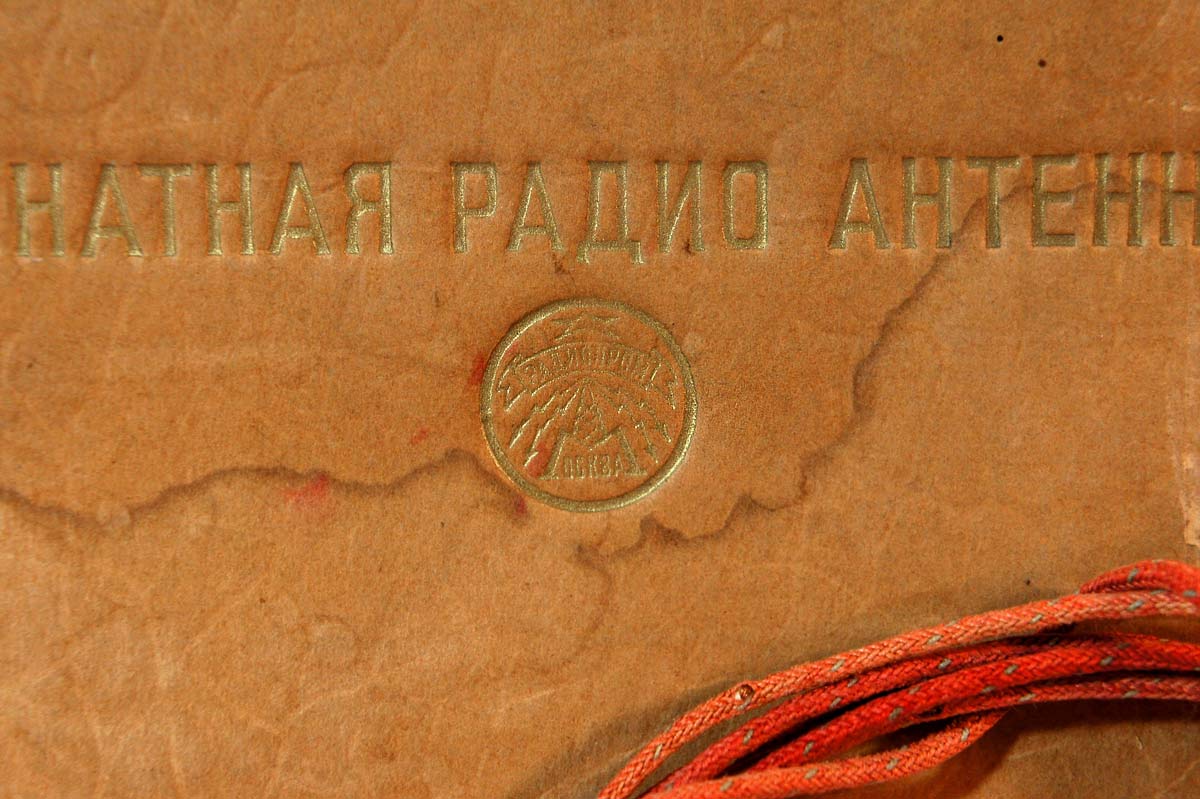 Комнатная настенная *Радио антенна* выпускалась предположительно с 1954 года Московской артелью *Радиопром*. Артель *Радиопром* была образована в 1946 году и преобразована в *Московский завод электроаппаратуры* в середине 50-х. Габариты радио антенны 245х168х6 мм. Толщина провода 2 мм. Материал – картон, оклеенный тиснённой бумагой. На задней стороне верёвка, чтобы вешать радио антенну на гвоздь.