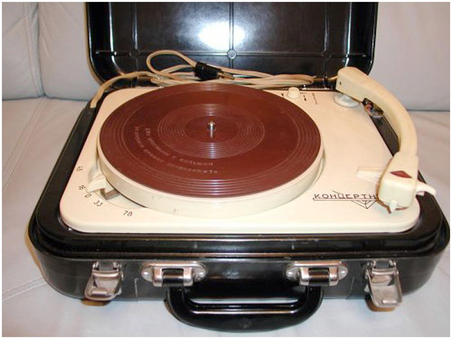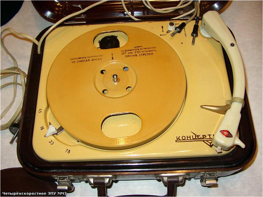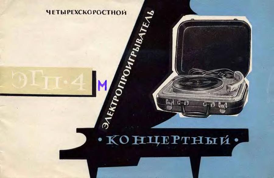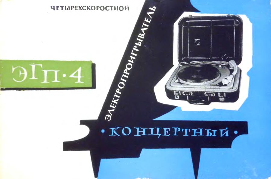 Электропроигрыватель *Концертный* ЭГП-4 с весны 1961 года выпускал Московский электромашиностроительный завод. Электропроигрывателем, подключившись к приёмнику или телевизору имеющему вход звукоснимателя можно было проигрывать обычные и долгоиграющие граммофонные пластинки с 4-мя скоростями вращения: 16, 33, 45 и 78 об/мин. ЭП имеет автостоп, выключающий электродвигатель при окончании проигрывания пластинки. Конструкция обеспечивает уверенную работу автостопа со стандартными грампластинками. Звукосниматель стоит пьезоэлектрический и воспроизводит полосу звуковых частот 50...15000 Гц. Чувствительность звукоснимателя - 80 мВ/см/сек. Электродвигатель типа ДАП-1. Питание от сети переменного тока 127 или 220 В. Масса ЭП - 6,4 кг. Цена 16 рублей 80 копеек. В 1963 году ЭП был модернизирован в *Концертный* (ЭГП-4М).