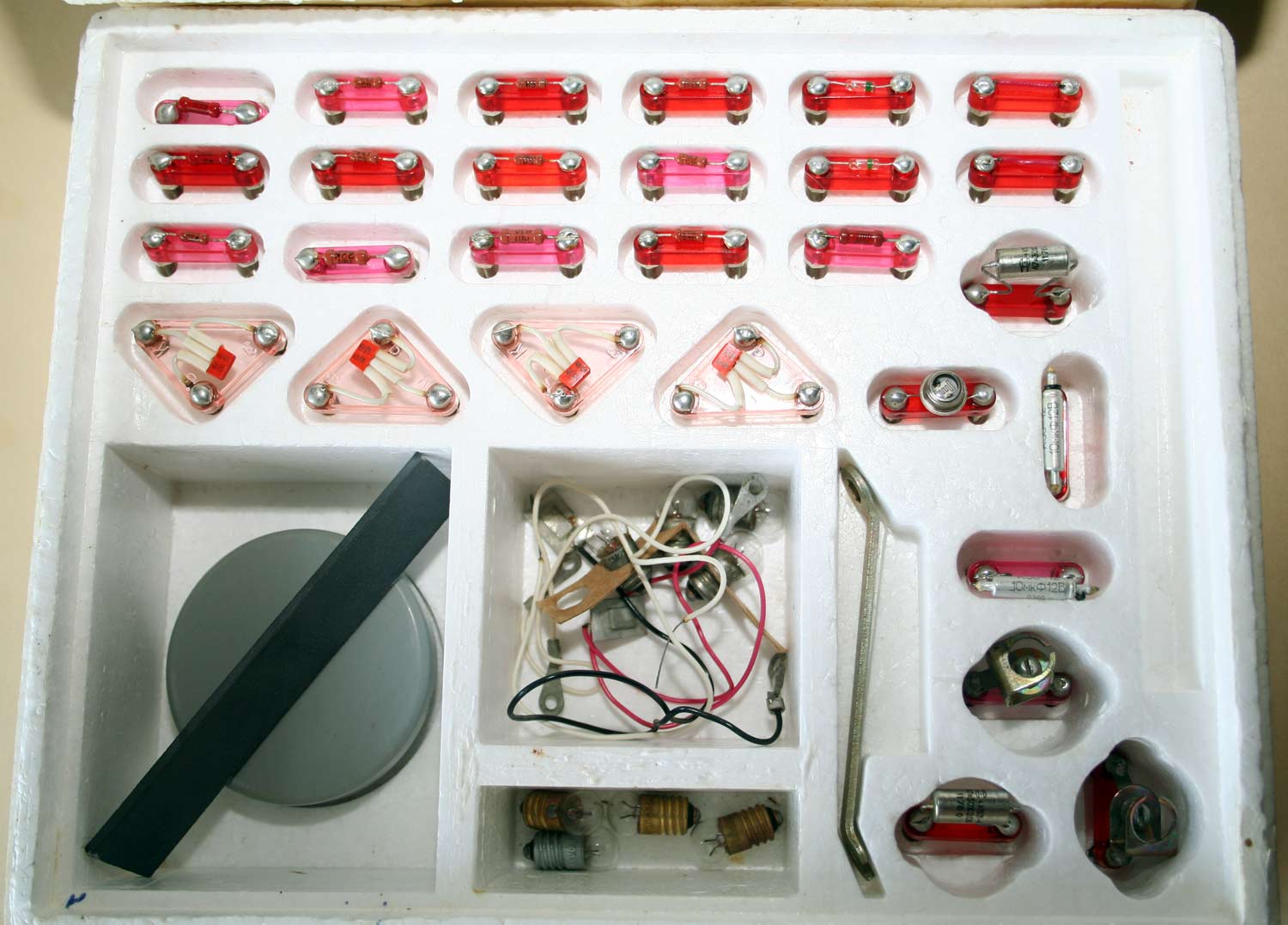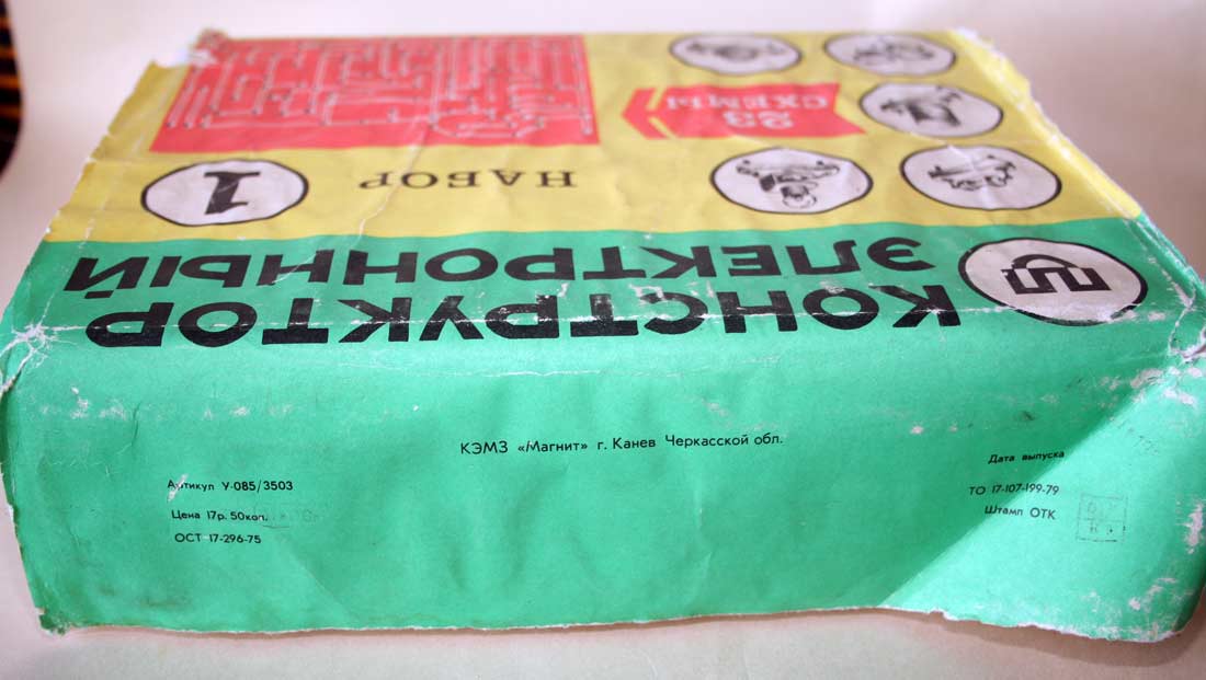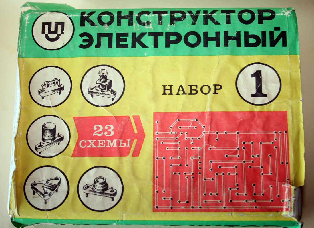 Конструктор электронный детский с I-кв 1980 года выпускал Каневский электромеханический завод *Магнит*. Конструктор электронный детский выпускался в двух вариантах набора. Каждый из наборов содержит универсальную печатную плату, радиоэлементы, детали и провода позволяющие из набора 1 собрать 23, а из набора 2 - 36 действующих схем различных радио и электротехнических устройств. Инструкция и схемы конструктора электронного детского. Фотографии и инструкцию конструктора предоставил Валерий Кручина, Харьков. ------