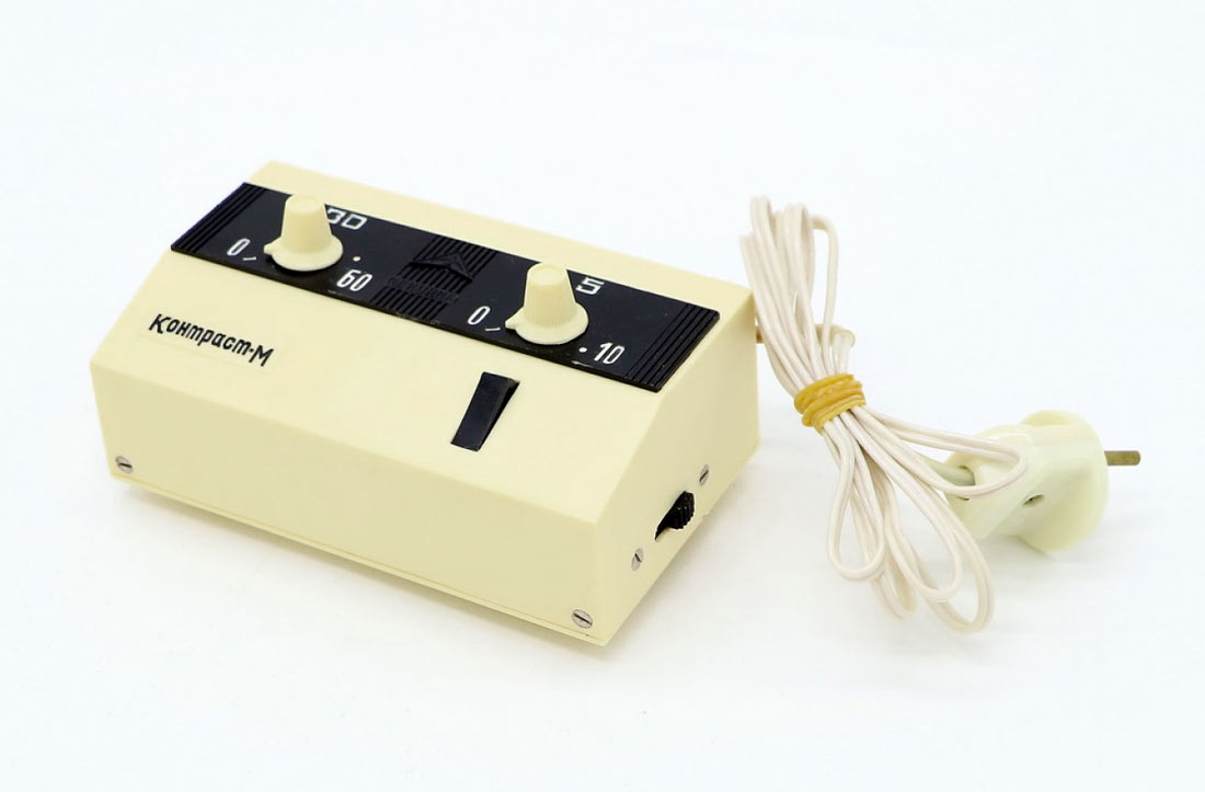 Реле времени на транзисторах *Контраст-М* выпускалось предположительно с 1979 года Тушинским машиностроительным заводом. Реле времени предназначено для полуавтоматического дозирования выдержек (времени горения лампы фотоувеличителя) при контактной или проекционной фотопечати.