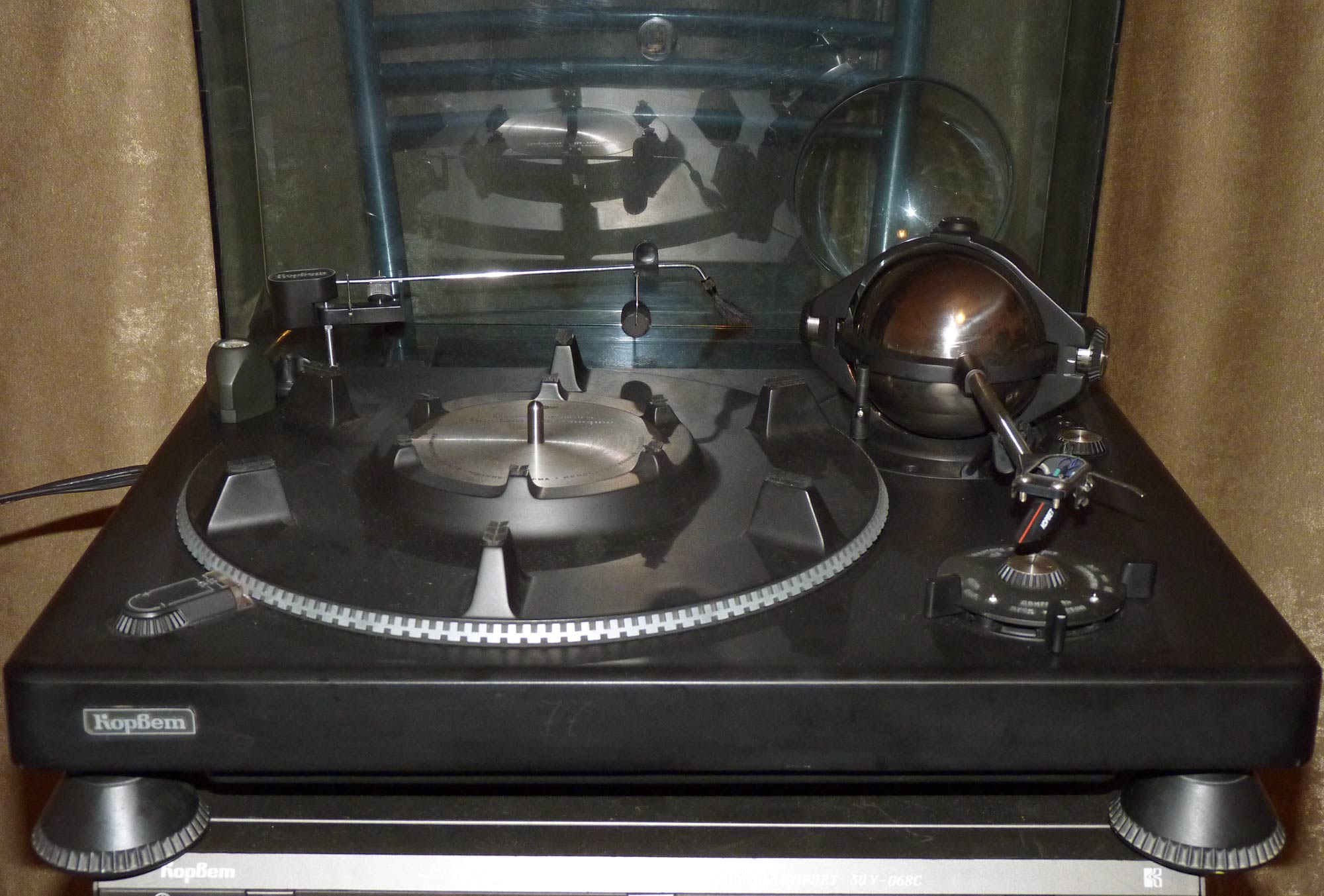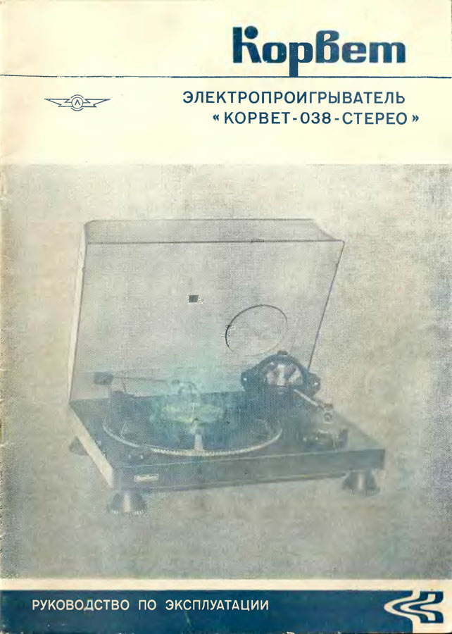 Электропроигрыватель *Корвет-038-стерео* с 1983 года выпускал Кировский завод *Ладога*. В модели установлен сверх-тихоходный двигатель постоянного тока, с электронной коммутацией обмоток. В тонарме используется вязкое динамическое демпфирование основного резонанса в горизонтальной и вертикальной плоскостях. Регуляторы прижимной силы и компенсатора скатывающей силы дают нагрузку на иглу в пределах 0...25 мН и равномерное её давление на обе стороны канавки. Головка звукоснимателя магнитная ГЗМ-018 Корвет, иглодержатель выполнен из бериллия, что снизило массу подвижной системы до 0,8 мг. Игла алмазная эллиптического сечения с кристаллографической ориентацией. ЭПУ имеет очиститель пластинок и автостоп выключающий питание двигателя и поднимающий звукосниматель над грампластинкой и микролифтом, он выполнен на фотоэлектронных элементах и герконах. **Корвет-038-стерео** конструкцией, параметрами и схемой схож с проигрывателем **Корвет-003-стерео**. Частота вращения диска 33, 45 об/мин. Коэффициент детонации 0,1%. Уровень акустического шума 20 дБ. Относительный уровень рокота -70 дБ. Диапазон частот 20...20000 Гц. Уровень фона -75 дБ. Коэффициент гармоник 0,8%. Габариты ЭП 485х225х370 мм. Вес 12 кг. С 1987 года согласно ГОСТ 11157-87 электропроигрыватель стал именоваться как *Корвет ЭП-038-стерео*.