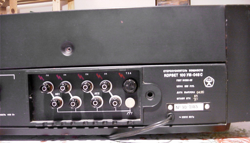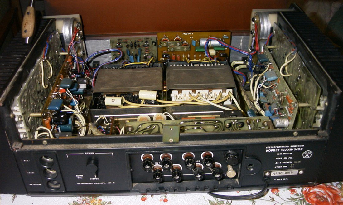 Стереофонический усилитель мощности *Корвет УМ-048С* с 1984 года выпускал Кировский завод *Ладога*. УМ предназначен для высококачественного усиления сигналов с предварительного усилителя высшего класса. Номинальная выходная мощность 2х100 Вт. Диапазон воспроизводимых частот 20...25000 Гц. КНИ менее 0,1%. Уровень фона -100 дБ. Потребляемая мощность - 100...300 Вт. Габариты усилителя 480х180х377 мм. Масса 22 кг. С 1987 года усилитель именовался как *Корвет 100УМ-048С*.