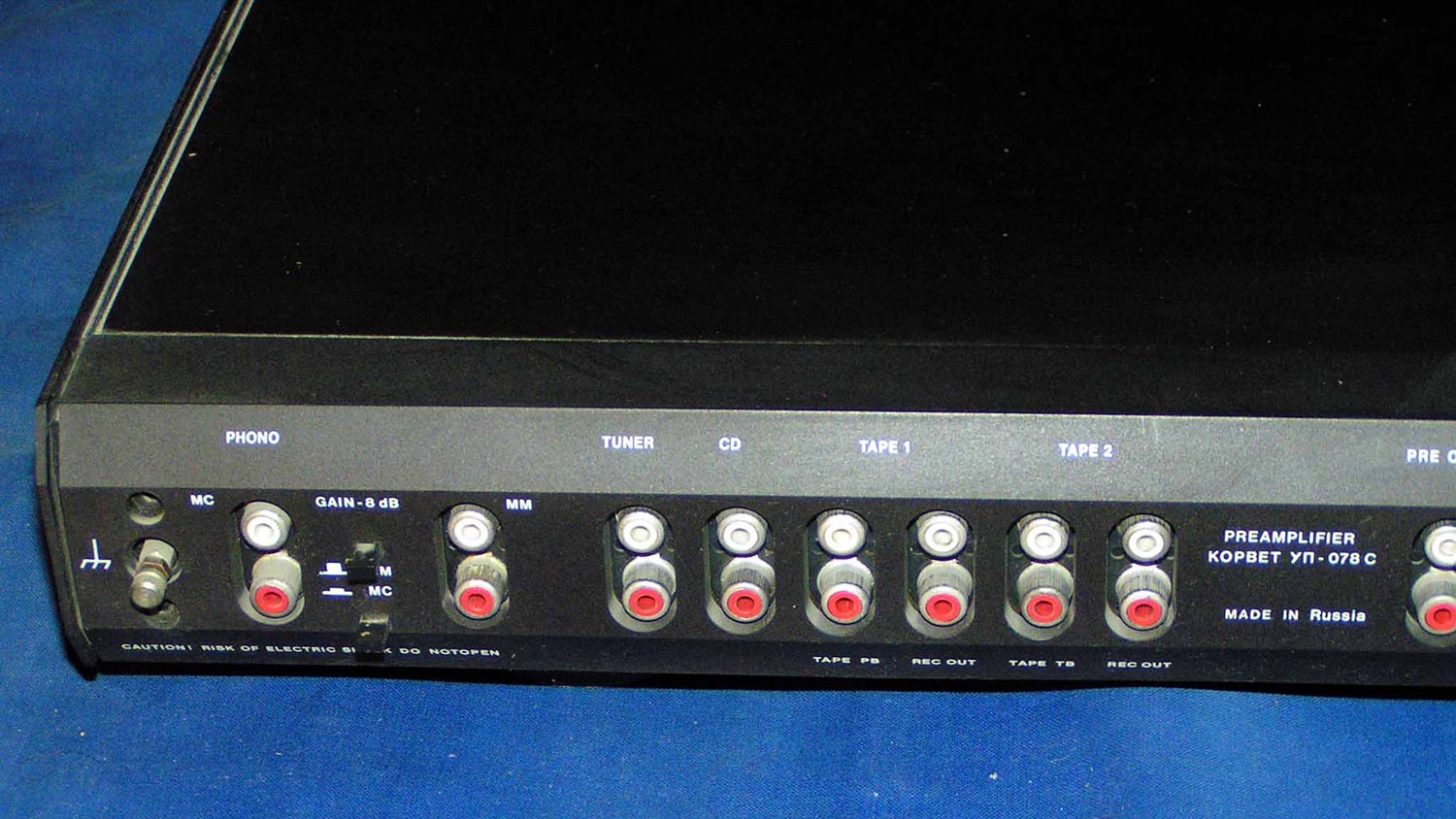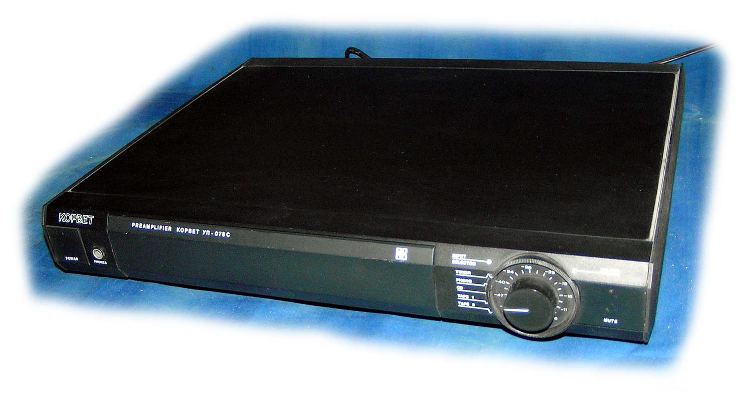 Усилитель предварительный *Корвет УП-078С* с начала 1991 года выпускал Кировский завод *Ладога*. Стереофонический усилитель предварительный **Корвет УП-078С** предназначен для коммутации, усиления и частотной коррекции сигналов с электропроигрывателя с электромагнитной или же электродинамической головкой звукоснимателя, проигрывателя компакт-дисков, тюнера и двух магнитофонов. Модель имеет предельно низкие собственные шумы и искажения, широкий диапазон рабочих частот и удобство в использовании. Более подробно о предварительном усилителе в инструкциях по эксплуатации.