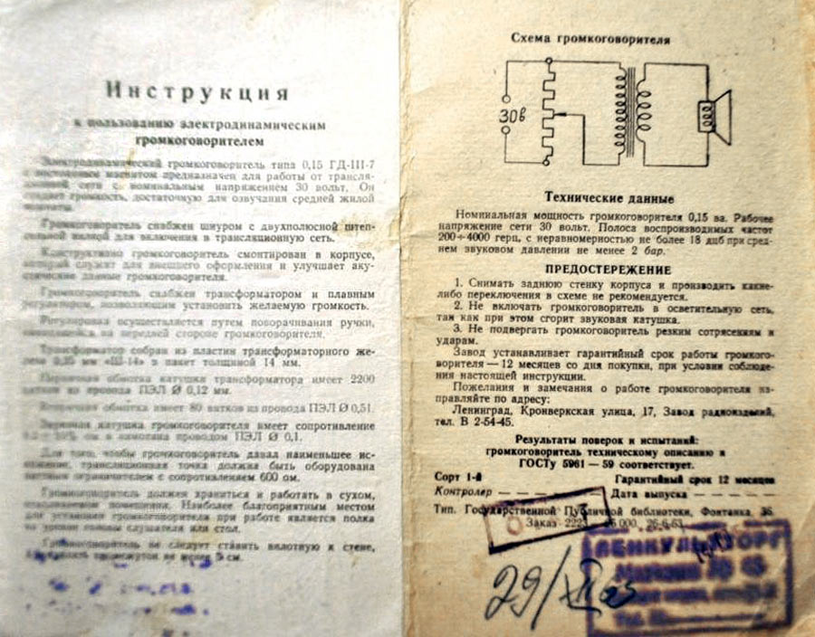 Абонентский громкоговоритель "Космос" с 1963 года выпускал Ленинградский завод Радиоизделий. Это стандартный абонентский громкоговоритель, предназначенный для воспроизведения местной радиопрограммы, передаваемой по трансляционной линии. Входное напряжение 30 (или 15) вольт. Тип - 0,15ГД-III-7. Потребляемая мощность 0,15 Вт. Диапазон воспроизводимых звуковых частот - 200...4000 Гц. Среднее звуковое давление 0,2 H/м2. Входное сопротивление 6 кОм. Габариты абонентского громкоговорителя - 200х100х65 мм. Масса - 750 гр. Розничная цена - 5 рублей. С 1963 года и Киевский завод электромеханики выпускал абонентский громкоговоритель "Космос", который кроме цены (3 р.50 к.) не отличался от описанного (смотри последнее фото).