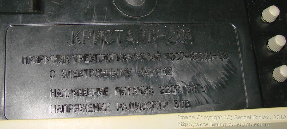 Приёмники трёхпрограммные с электронными часами *Кристалл-201* и *Ласпи ПТ-203* с 1990 года выпускал Севастопольский радиозавод имени Калмыкова. Приёмники выпускались как в виде автономных изделий, так и для встраивания в мебель. Оба приёмника собраны по одинаковой схеме и конструкции, но с разным оформлением и производились совместно для расширения ассортимента выпускаемой заводом продукции.