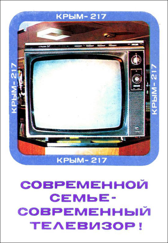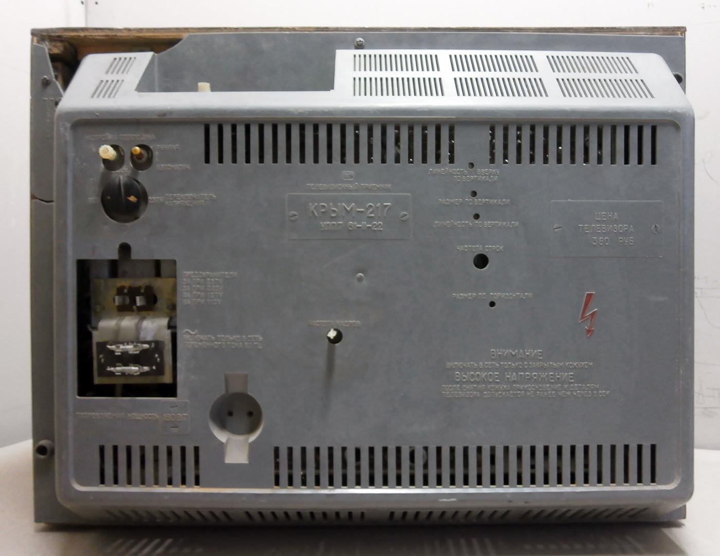 Телевизионный приёмник чёрно-белого изображения *Крым-217* с 1974 года выпускал Симферопольский завод телевизоров имени 50 летия СССР. Унифицированный телевизор 2 класса **Крым-217** (УЛПТ-61-II-22) производился без блока ДМВ, с возможностью его установки. Выпускался телевизор в настольном и напольном вариантах. Футляр ТВ отделан ценными породами дерева и пластмассой. Правая часть передней панели выполнена как решетка, за которой находится фронтальный громкоговоритель. Сзади телевизор закрыт пластмассовой стенкой с отверстиями. Телевизор работает на любом из 12 каналов. Удобство создают органы управления, расположенные в верхней части и справа на передней панели, дополнительно введён регулятор чёткости. На передней панели в верхней части ТВ находятся регуляторы контрастности, яркости, громкости, включатель и выключатель питания, справа расположен переключатель каналов, ручка селектора ДМВ, переключатель MB-ДМВ. Основная часть схемы выполнена печатным монтажом на платах из фольгированного гетинакса и размещена на шасси. АС состоит из двух фронтальных громкоговорителей 3ГД-38Е и 1ГД-36. В телевизоре имеется разъём для подключения головных телефонов, другой разъём предназначен для записи звука на магнитофон. Громкость и тембр на запись не влияют. Яркость и громкость на расстоянии до 5 метров можно регулировать проводным пультом дистанционного управления. Автоматически регулируются АПЧГ, АПЧ и Ф в блоке строчной развертки, стабилизация размеров изображения. Параметры аналогичны унифицированным ТВ 2 класса. В 1972 году ограниченной серией был выпущен телевизор *Крым-215*, который по конструкции и оформлению был аналогом ТВ *Крым-217*.