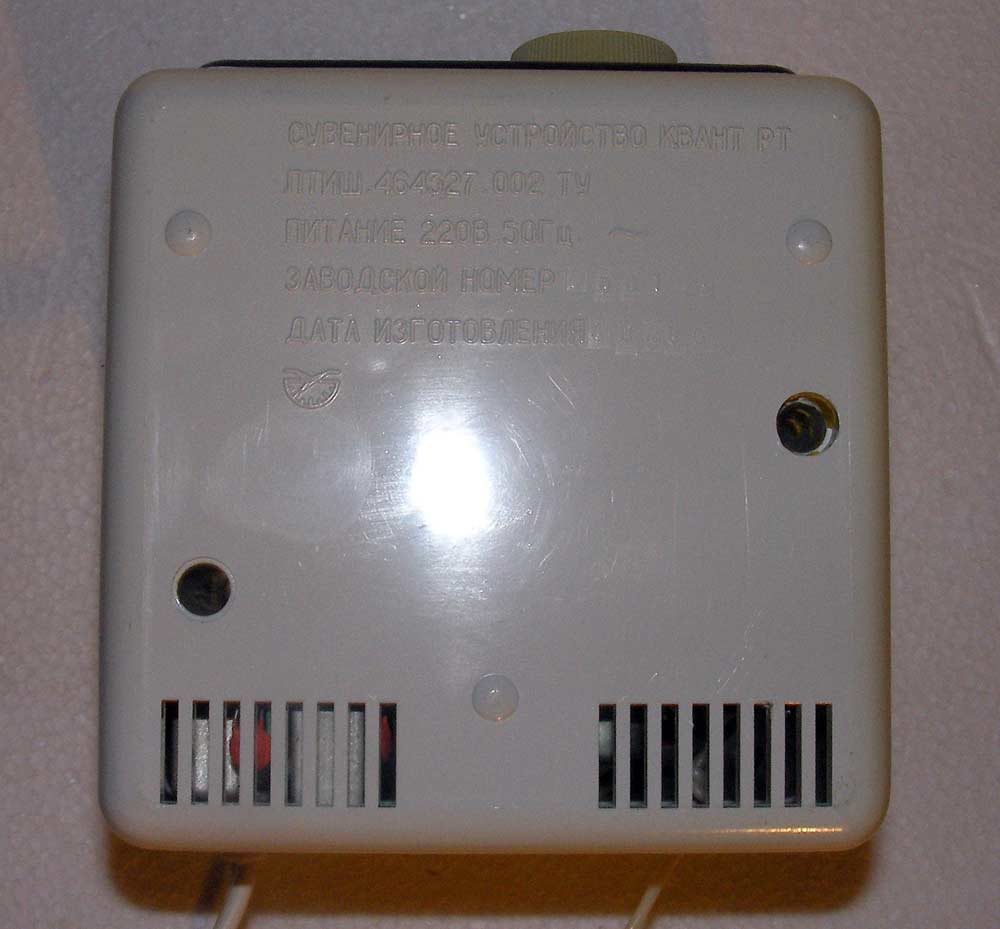 Стационарный транзисторный радиоприёмник *Квант РТ-04* выпускался с 1992 года Киевским заводом *Буревестник*. Сувенирное устройство *Квант РТ-04* предназначено для работы в качестве электронных часов, таймера, будильника и радиоприёмника, который работает в УКВ диапазоне 65...75 МГц. Чувствительность приёмника с антенной (отрезок провода) 10 мкВ. Диапазон воспроизводимых частот 200...5000 Гц. Номинальная выходная мощность 100 мВт, максимальная 200 мВт. Питание от сети 220 в. Резервное питание для хода электронных часов батарея типа *Крона*.