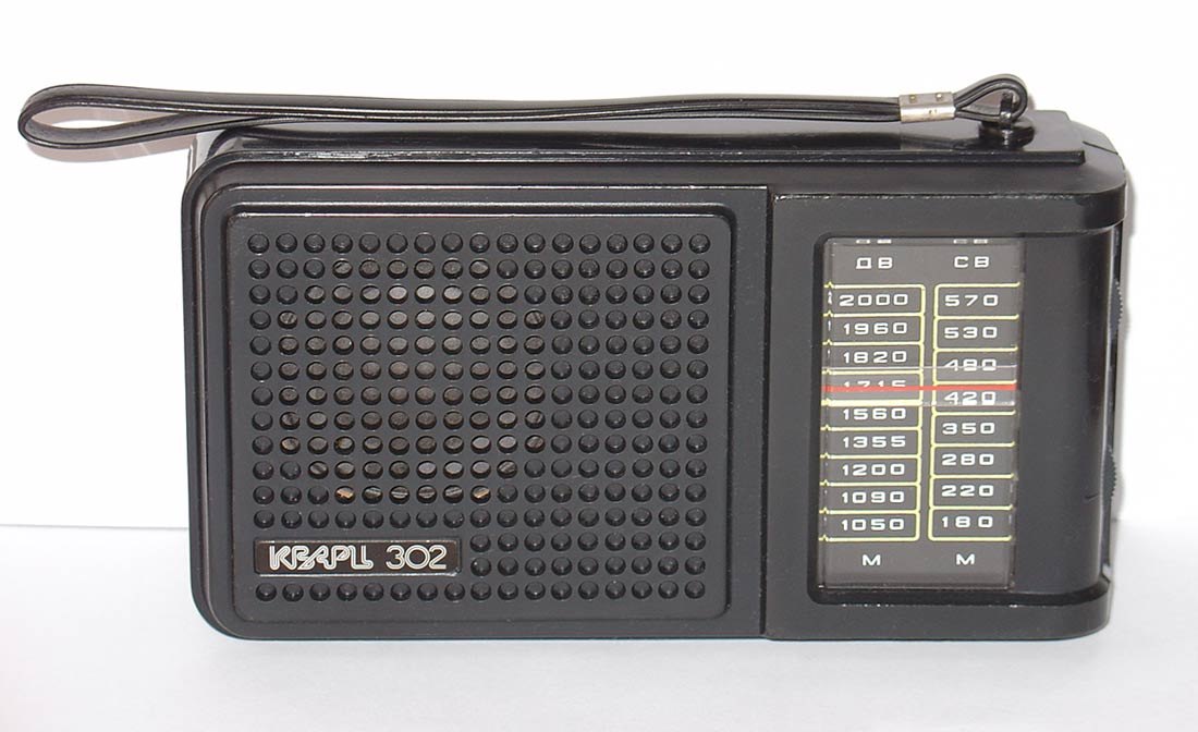 Портативный транзисторный радиоприёмник *Кварц-302* с 1978 года выпускал Кыштымский радиозавод. Радиоприёмник предназначен для приёма программ радиовещательных станций в диапазонах ДВ и СВ. Чувствительность в диапазоне ДВ - 0,8, в СВ - 0,4 мВ/м. Селективность - 20 дБ. Номинальная выходная мощность 100 мВт. Диапазон воспроизводимых частот звука 450...3150 Гц. Питание от батареи **Крона**. Габариты радиоприёмника - 176х112х48 мм. Его масса 540 гр. С начала 1985 года радиоприёмник именовался как *Кварц РП-302*.