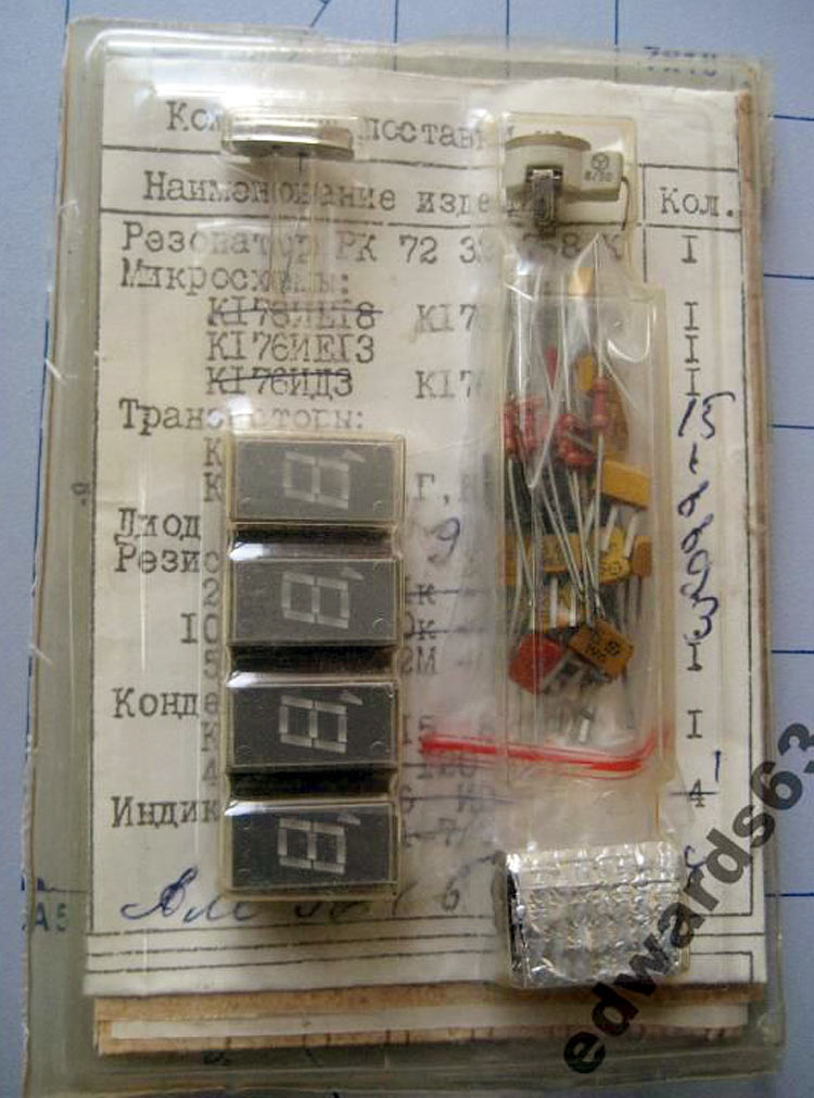 Радионабор *Кварц-34* выпускался предположительно с 1987 года. Набор предназначен для сборки электронных часов с кварцевой стабилизацией частоты.