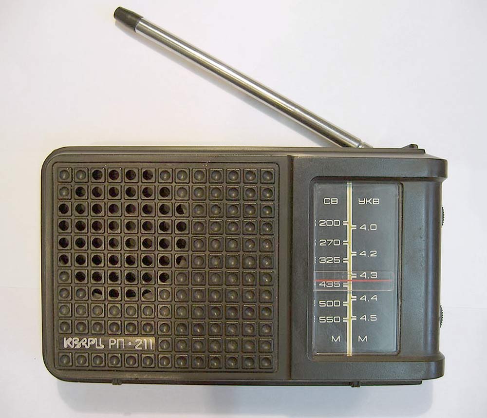 Портативный радиоприёмник *Кварц РП-211* с 1992 года выпускал Кыштымский радиозавод. Радиоприёмник **Кварц РП-211** предназначен для приёма программ радиовещательных станций в диапазонах СВ и УКВ. Радиоприёмник собран на двух микросхемах по традиционной схеме их включения. Чувствительность радиоприёмника в диапазоне СВ - 1 мВ/м, в диапазоне УКВ - 30 мкВ. Селективность в диапазоне СВ 20 дБ. Диапазон воспроизводимых частот в диапазонах СВ - 300...3550 Гц, УКВ - 300...5000 Гц. Номинальная выходная мощность 100 мВт, максимальная 200 мВт. Питание осуществляется от четырёх элементов типа А-316. Габариты модели - 176х112х48 мм. Вес - 400 гр.