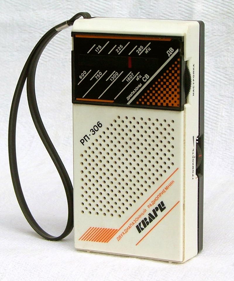 Портативный радиоприёмник *Кварц РП-306* с 1987 года выпускал Кыштымский радиозавод. Приёмник представляет собой СВ, ДВ супергетеродин, собранный на микросхеме К174ХА10, полевом транзисторе и с небольшим количеством элементов. Чувствительность в диапазоне ДВ 2,5, СВ 1,3 мВ/м. Селективность в обоих диапазонах 30 дБ. Диапазон воспроизводимых звуковых частот - 450...4000 Гц. Максимальная выходная мощность 150 мВт. Габарит радиоприёмника 74х158х37 мм. Масса с батареями 340 гр. С 1992 года по новому ГОСТу Кыштымский радиозавод выпускал радиоприёмник **Кварц РП-206** не отличающийся от описанного.