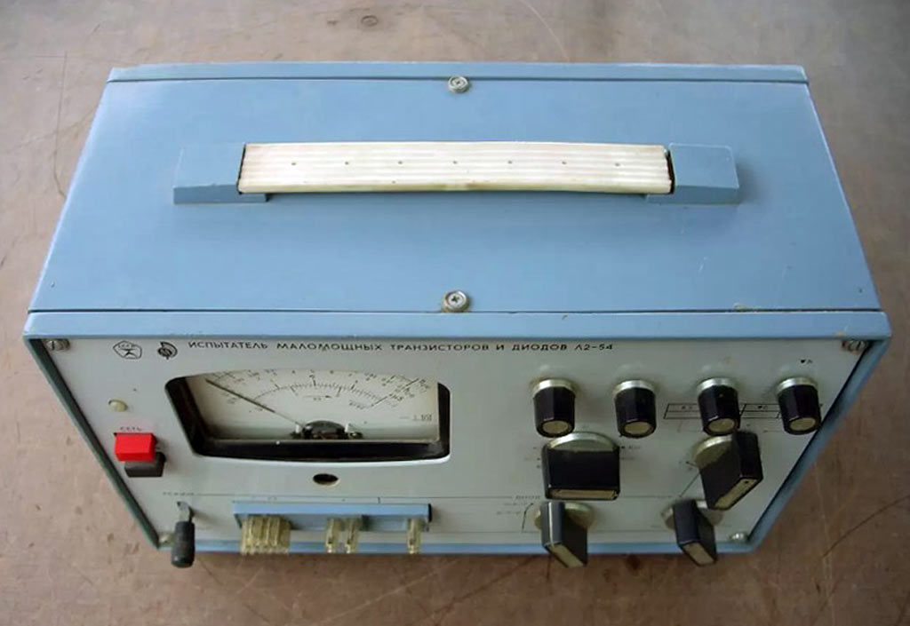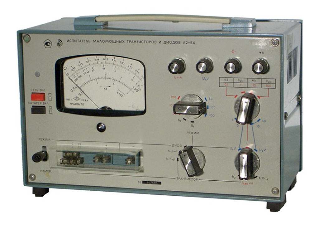 Испытатель маломощных транзисторов и диодов *Л2-54* изготавливался предположительно с 1980 года Минским заводом *Калибр*. Прибор предназначен для определения работоспособности маломощных транзисторов и диодов малой и средней мощности, путем измерения их основных параметров. Питается прибор от сети переменного тока напряжением 220 В или от шести элементов *373*. Потребляемая от сети мощность 12 ВА. Габариты прибора - 300 х 205 х 185 мм. Масса - 6 кг. В модели использовались два рисунка шкалы стрелочных приборов.