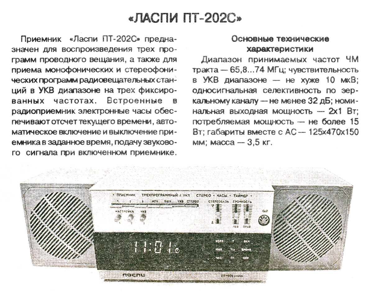 Приёмник трёхпрограммный и УКВ-ЧМ *Ласпи ПТ-202С* предположительно с 1993 года выпускал Севастопольский радиозавод им. Калмыкова.