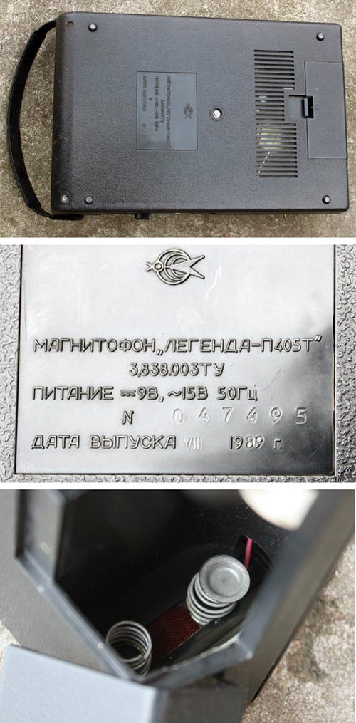 Тифлотехнический кассетный проигрыватель *Легенда П-405Т* с 1989 года выпускало Арзамасское приборостроительное ПО. Специальный тифлотехнический двухскоростной четырёхдорожечный магнитофон, предназначенный для воспроизведения фонограмм МФ2-4 на скорости 2,38 см/с и музыкальных фонограмм на скорости 4,76 см/с через ЛВ и громкоговоритель. В модели имеются; регулятор громкости, тембра ВЧ, регулятор скорости ленты, гнездо для наушников ТМ-4, гнездо для внешних устройств и шнура ДУ. Питание от 6 элементов 343 и от сети через БП. Время работы от батарей 10 часов. Диапазон регулировки скорости 2,38 см/сек 0...50%. Диапазон частотна скорости 2,38 см/с 125...5000 Гц; 4,76 см/с 63...10000 Гц. Выходная мощность 0,8 Вт. Габариты 265х175х85 мм. Вес 2,3 кг.