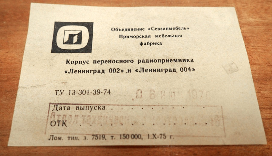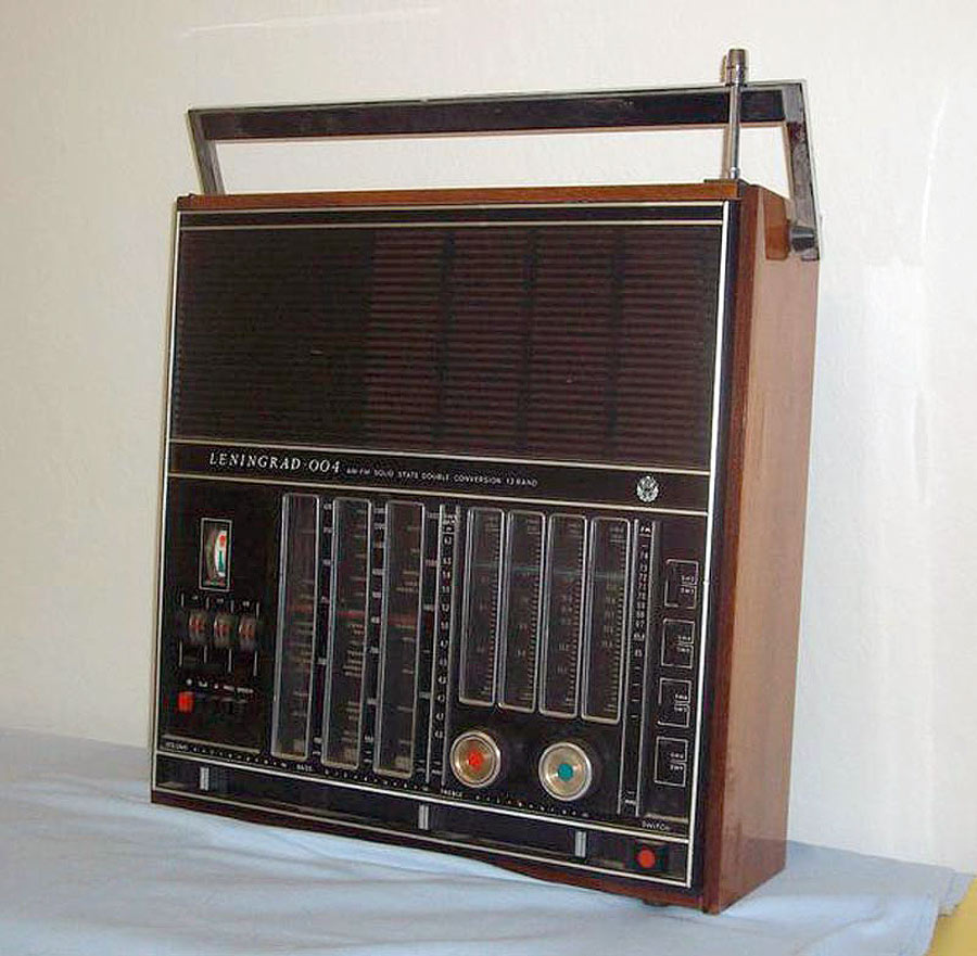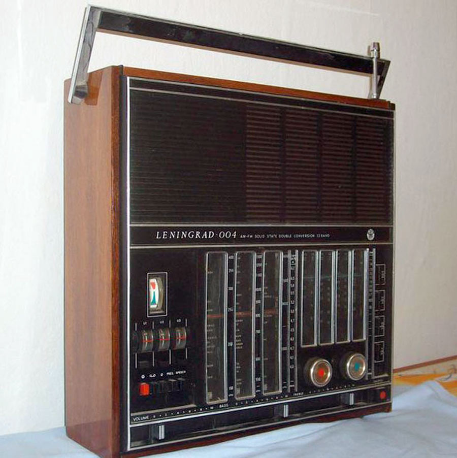 Переносной радиоприёмник *Leningrad-004* с 1975 года выпускал Ленинградский завод *Радиоприбор*. **Leningrad-004** это экспортный вариант серийного приёмника **Ленинград-002**. Радиоприёмник обеспечивает высококачественное прослушивание программ радиостанций в диапазонах ДВ, СВ, КВ и УКВ. В диапазоне КВ приёмник работает с 13 и до 50 метров. УКВ диапазон имел два варианта частот: 64...73 МГц или 88...108 МГц, он зависел от страны, куда приёмник экспортировали. Приёмник имеет возможность зафиксировать 3 настройки в УКВ диапазоне. Есть регуляторы тембров ВЧ и НЧ, переключатель речь-соло, стрелочный индикатор уровня сигнала и питания, 2 шкалы настройки, гнёзда подключения магнитофона на запись, электропроигрывателя для прослушивания грамзаписи через усилитель приёмника, акустической системы, внешней антенны, заземления и головных телефонов. Приёмник собран на 36 транзисторах и микросхеме. Корпус облицован шпоном ценных пород, передняя и задняя стенки футляра из полистирола. Вес модели без батарей 9 кг.
